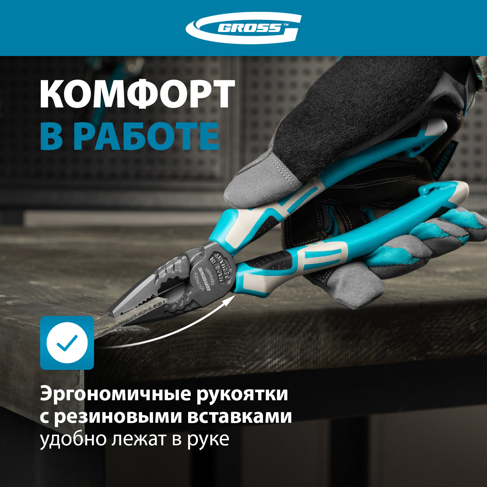 Плоскогубцы комбинированные Gross 205 мм трехкомпонентные рукоятки 16975 интересное: