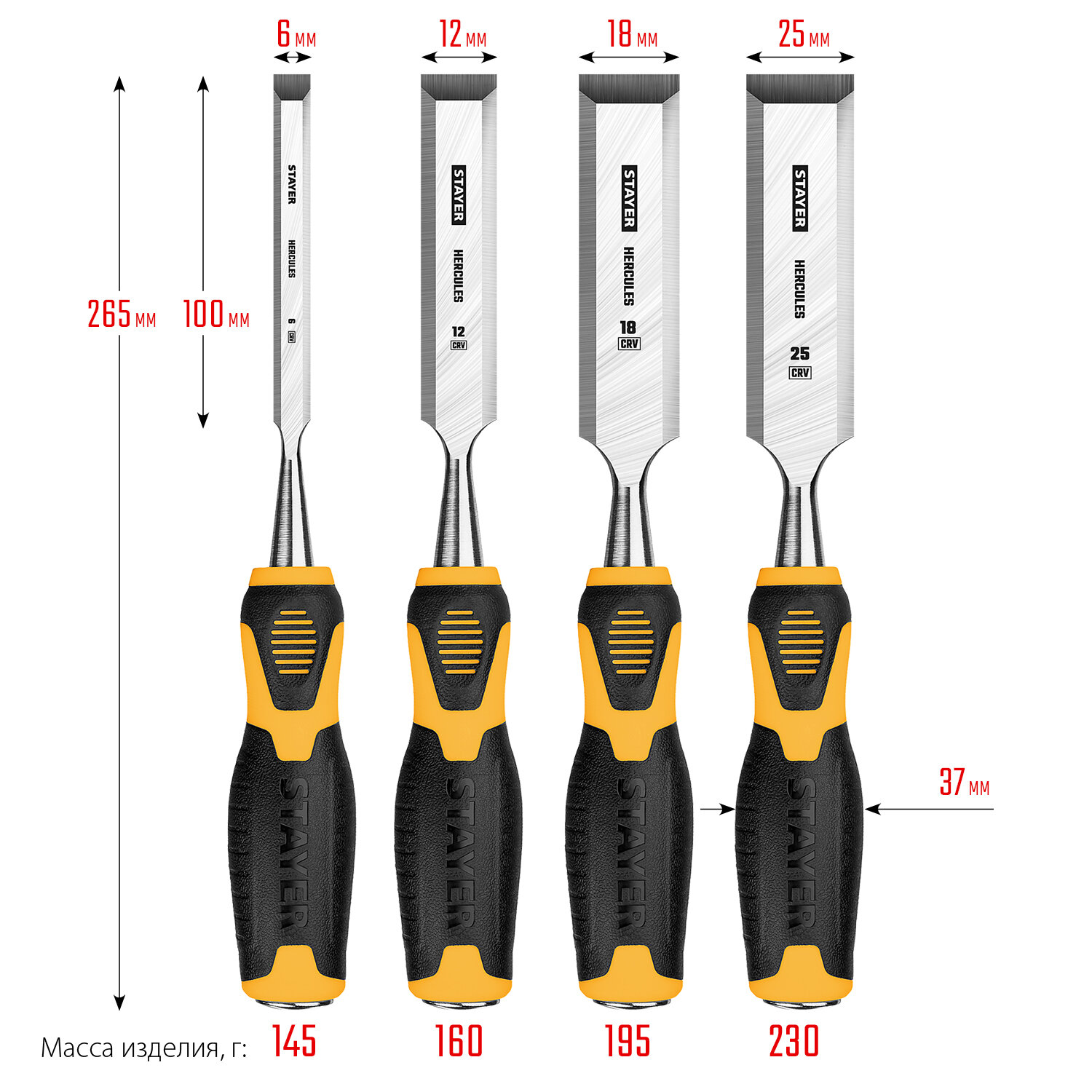 Купить HERCULES набор стамесок-долот с двухкомпонентной рукояткой, 4шт STAYER 18205-H4