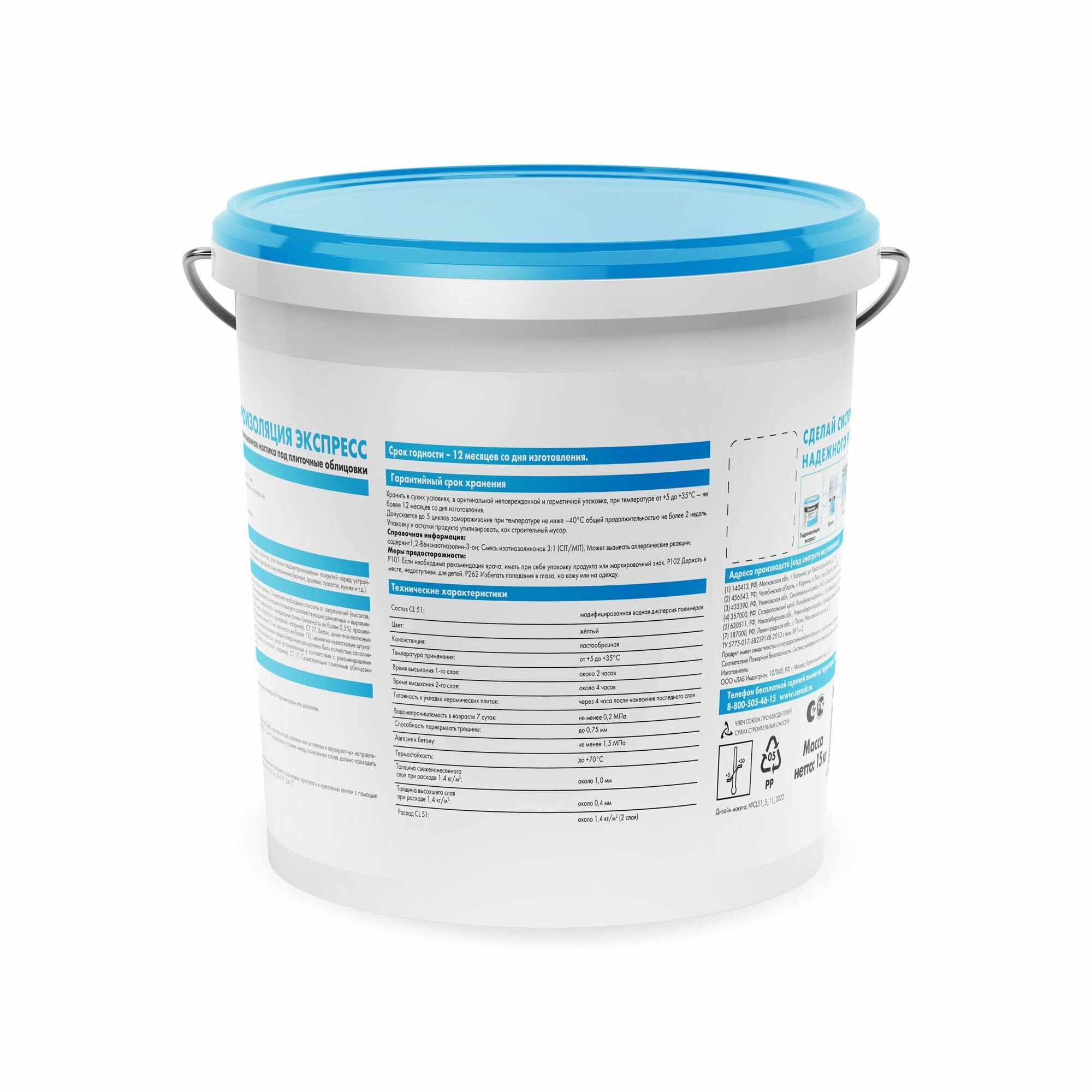 Церезит CL-51 Экспресс мастика гидроизоляционная (15кг) / CERESIT CL-51 Экспресс эластичная гидроизоляция (15кг)