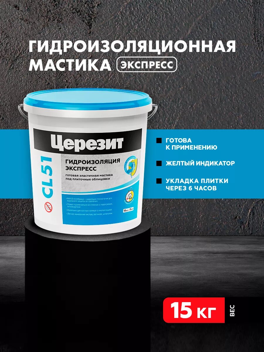 Церезит CL-51 Экспресс мастика гидроизоляционная (15кг) / CERESIT CL-51 Экспресс эластичная гидроизоляция (15кг)