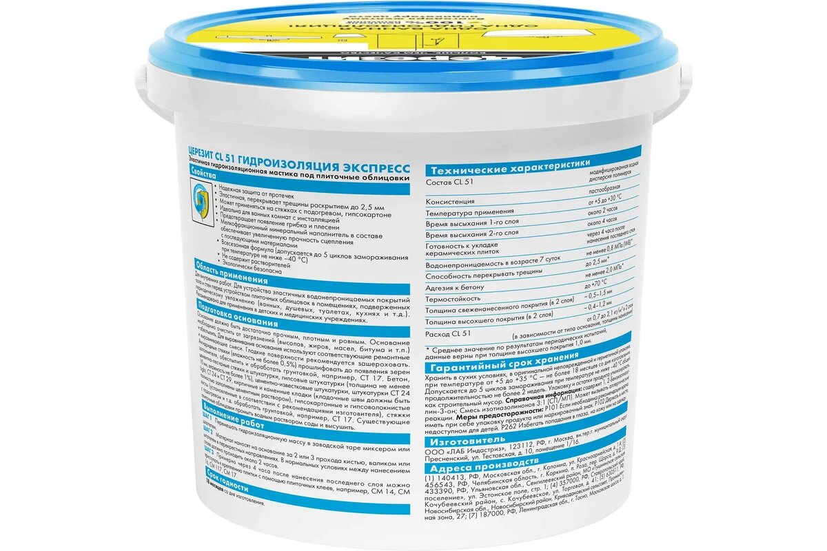 Церезит CL-51 Экспресс мастика гидроизоляционная (15кг) / CERESIT CL-51 Экспресс эластичная гидроизоляция (15кг)