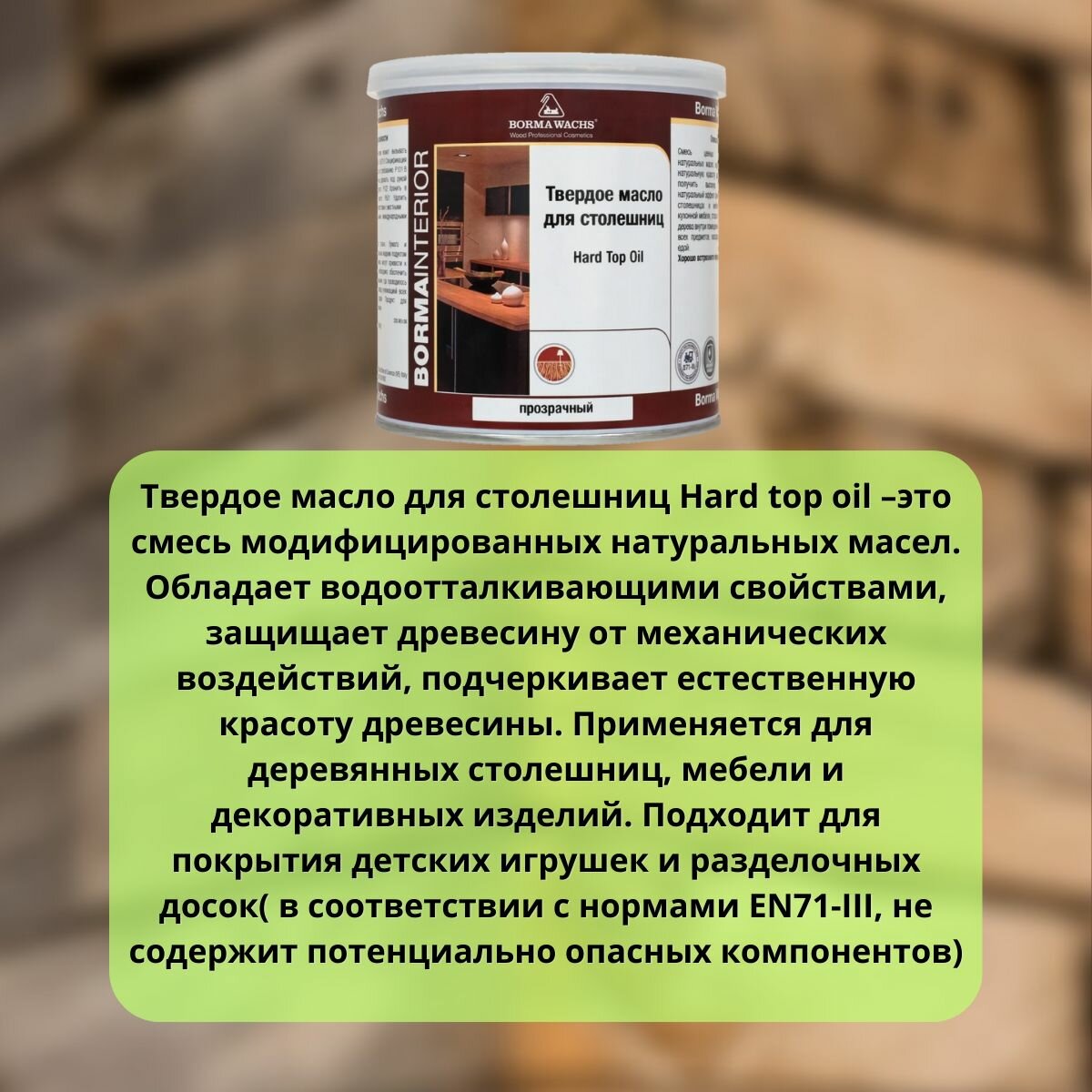 Масло для дерева BORMA HARD TOP OIL NATURAL Твердое масло для столешниц 6020 750мл 4916N