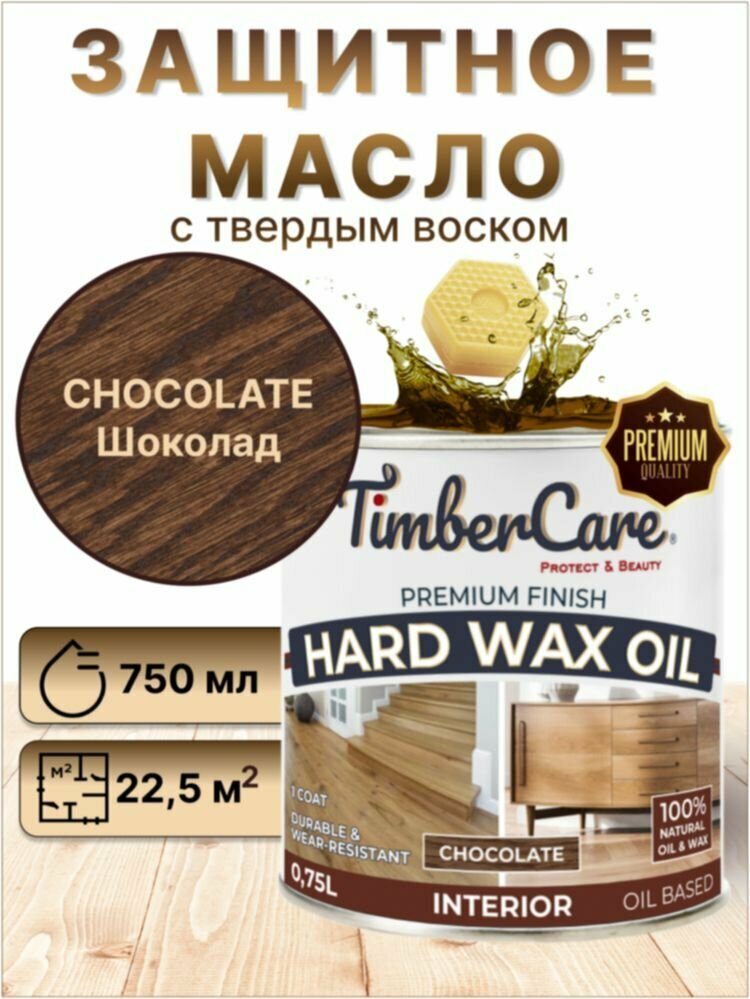 Масло для дерева и мебели с твердым воском TimberCare Hard Wax Color Oil, быстросохнущие для внутренних работ, Шоколадный/ Chocolate, 0.175 л