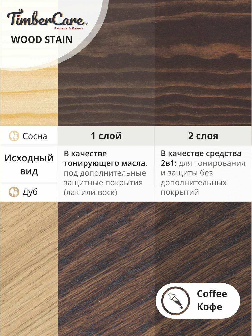 Тонирующее масло для дерева высокой прочности TimberCare Wood Stain, быстросохнущие масла для дерева и мебели, пропитка для дерева для внутренних работ, тонирующая морилка для мебели Кофе Coffee 0,2л