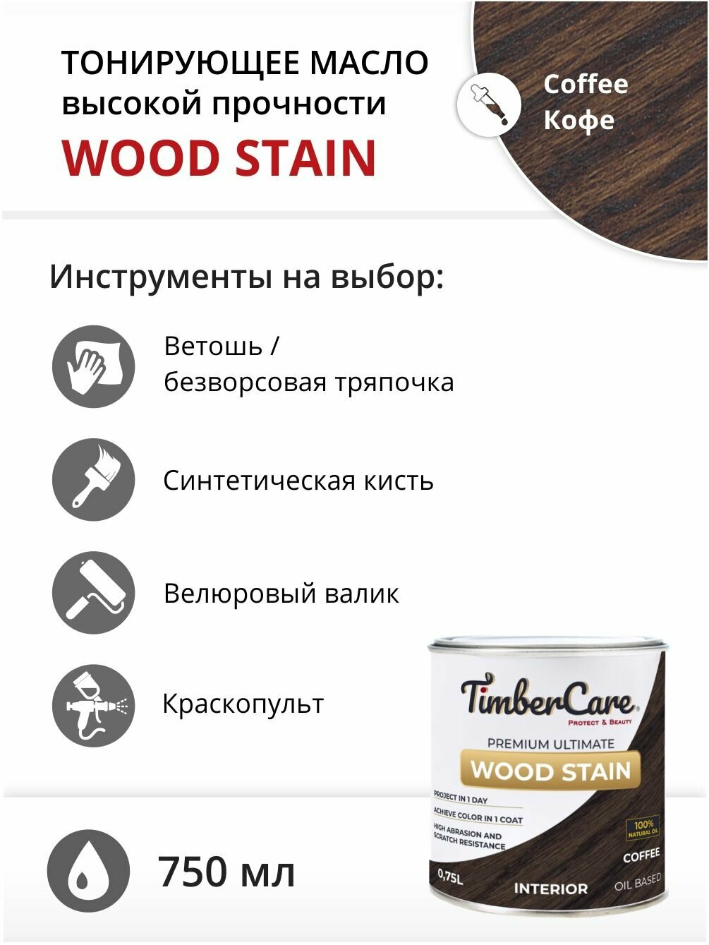 Купить Масло для дерева и мебели TimberCare Wood Stain, быстросохнущие масла для дерева для внутренних работ, Кофе/ Coffee, 0.75 л