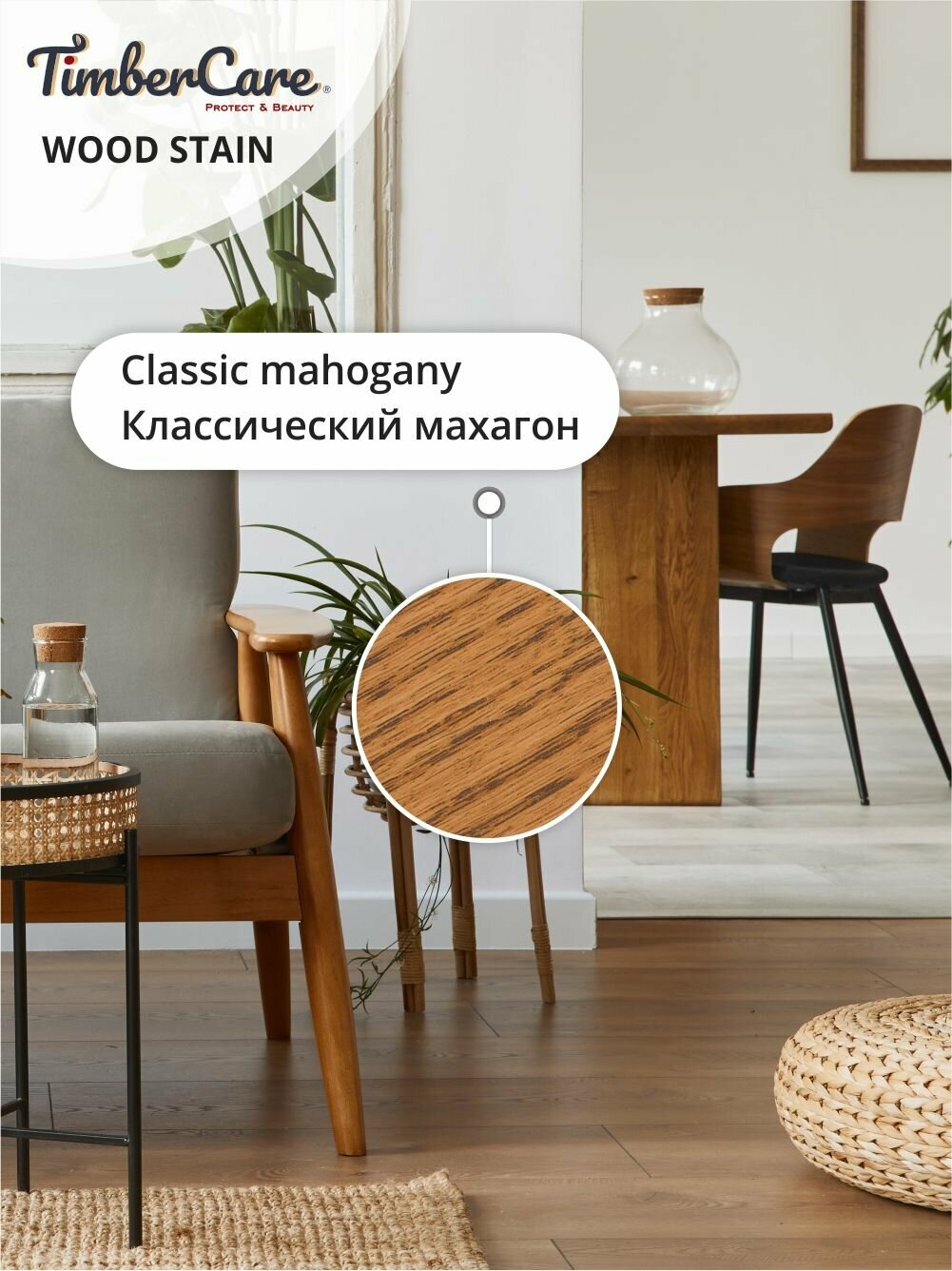 Масло для дерева и мебели TimberCare Wood Stain, быстросохнущие масла для дерева для внутренних работ, Классический махагон/ Classic Mahogany, 0.2 л