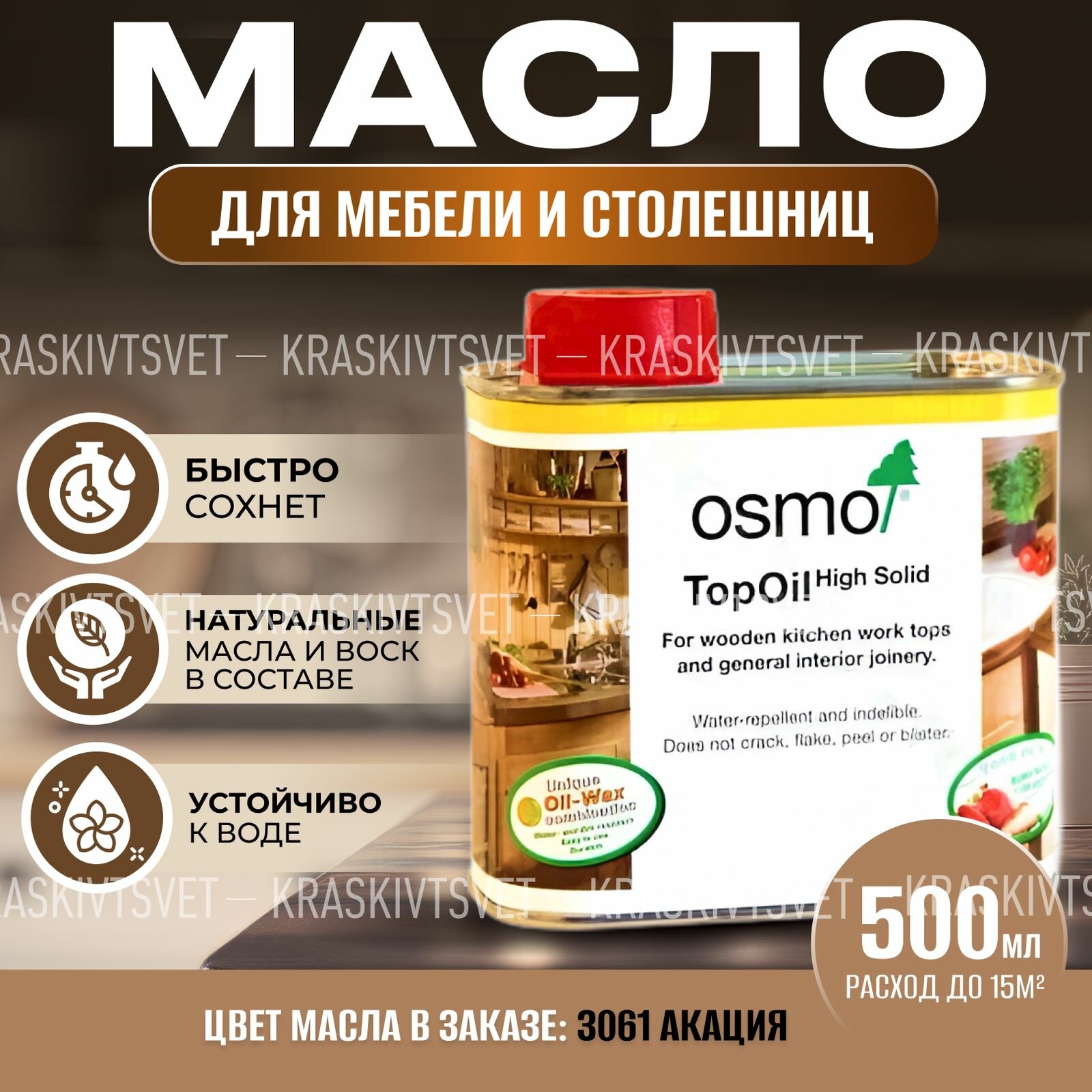 Купить Osmo Масло с твердым воском для мебели и столешниц TopOil (0,5 л 3061 Акация )