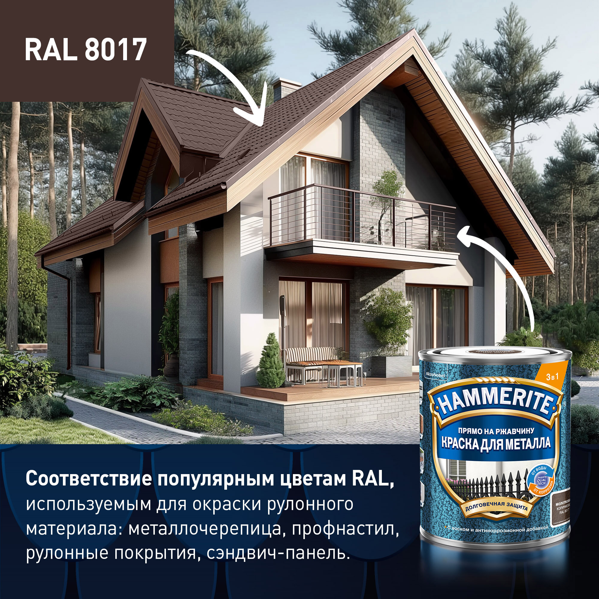 Краска Hammerite для металла прямо на ржавчину, 3 в 1, молотковая Коричневая RAL 8017, 0.75 л