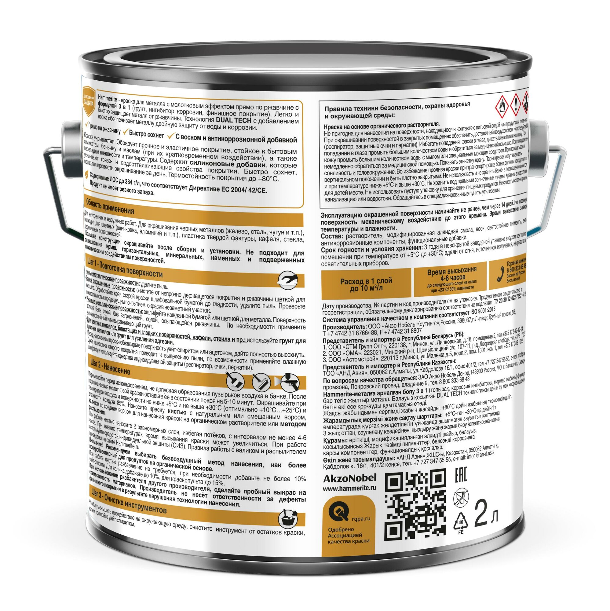 HAMMERITE краска для металла с молотковым эффектом прямо на ржавчину RAL9005 черный 2 л