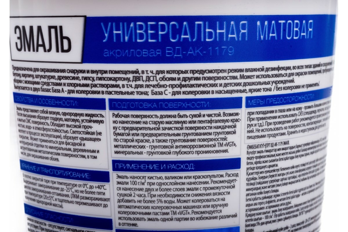 VGT ВГТ ВДАК 1179 Эмаль акриловая универсальная, глянцевая, база С, 1кг