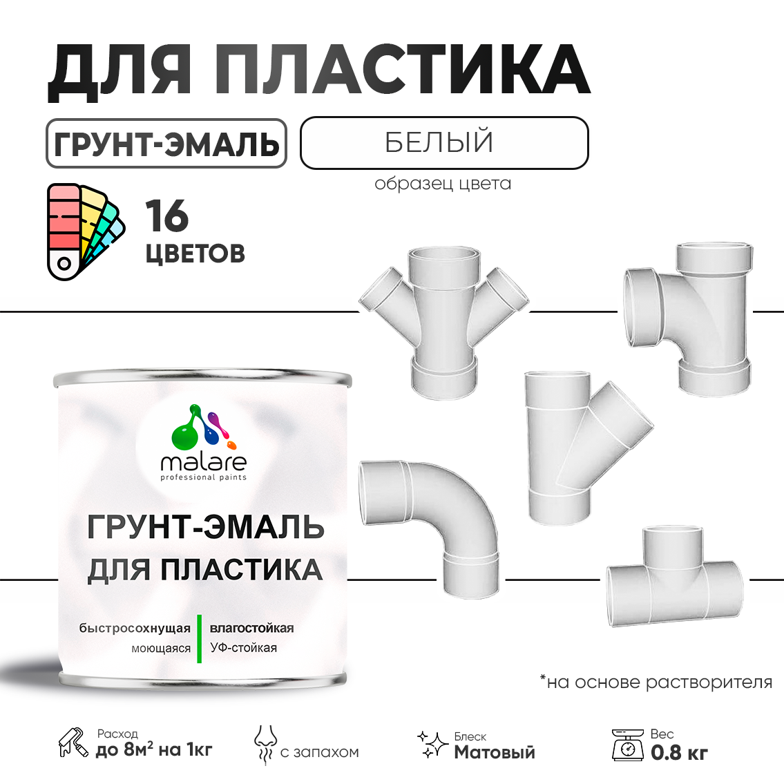 Купить Грунт-Эмаль, Краска Malare 3 в 1 для пластика, окон и подоконников, сайдинга, быстросохнущая, матовый, белый, 0.8 кг.
