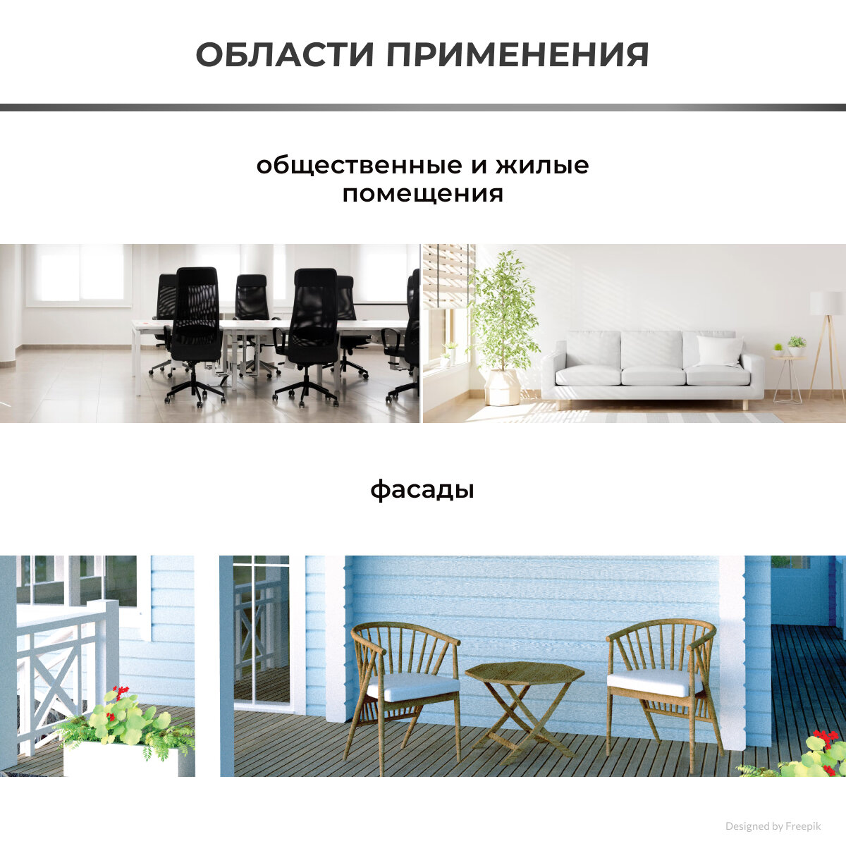| Область применения | для балок / для влажных помещений / для дверей / для мебели / для окон / для перегородок / для полок / для потолков / для садовой мебели / для стен / для фасадов / эмаль |
