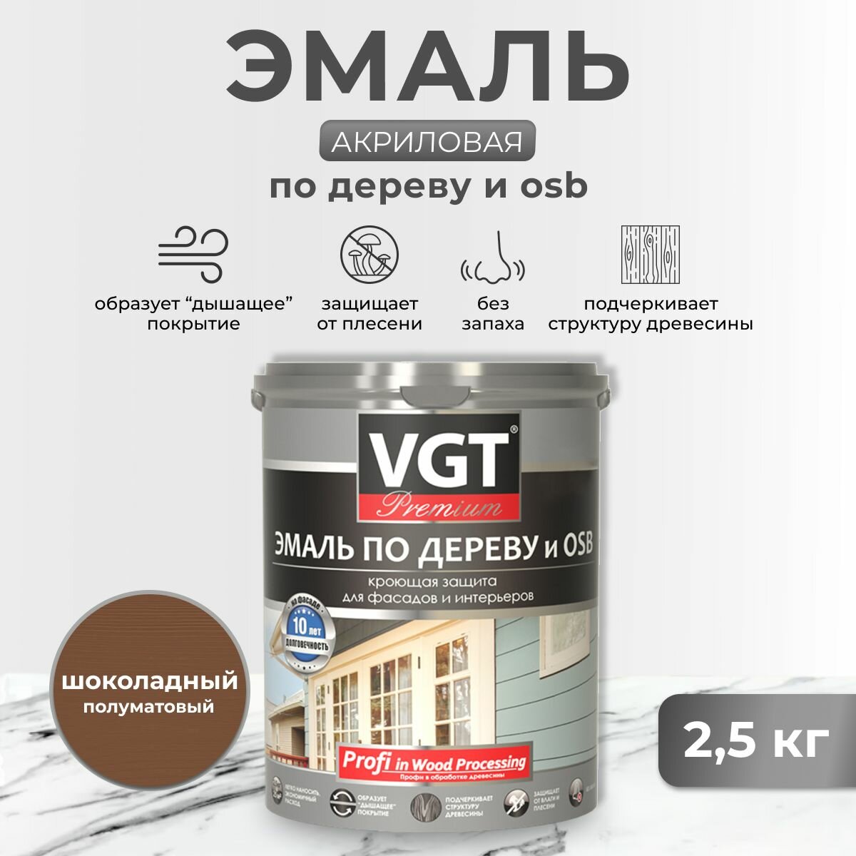 Купить Эмаль по дереву и OSB VGT Premium, 2,5 кг, шоколадная, полуматовая, 1шт