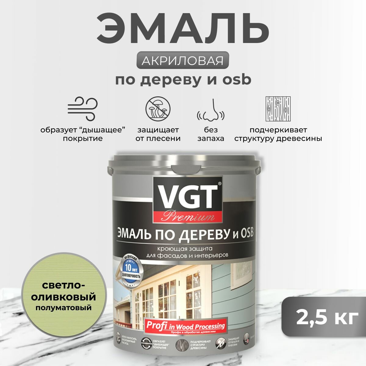 Эмаль по Дереву и OSB VGT Premium 2.5кг Светло-Оливковая ВД-АК-1179 Акриловая, Полуматовая для Внутренних и Наружных Работ / ВГТ Премиум.