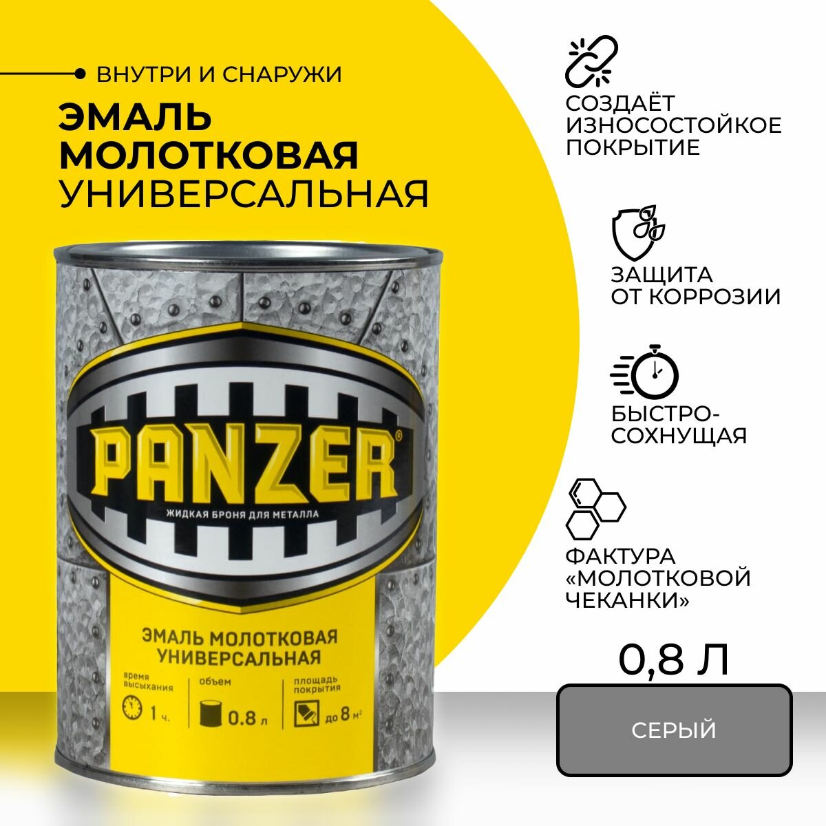 Эмаль универсальная Panzer, молотковая, 0,8 л, серая