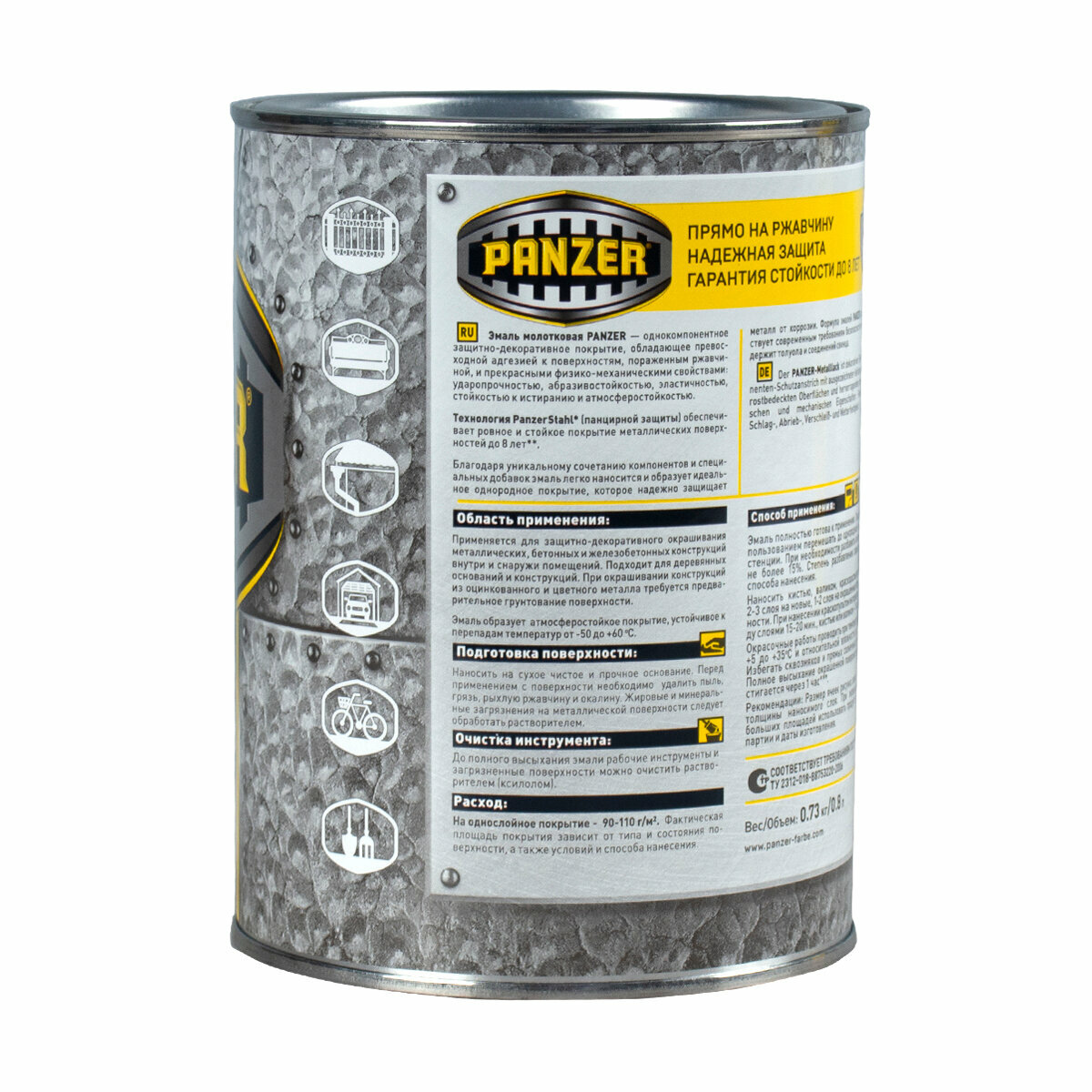 Эмаль универсальная Panzer , молотковая, 0,8 л, серебристая