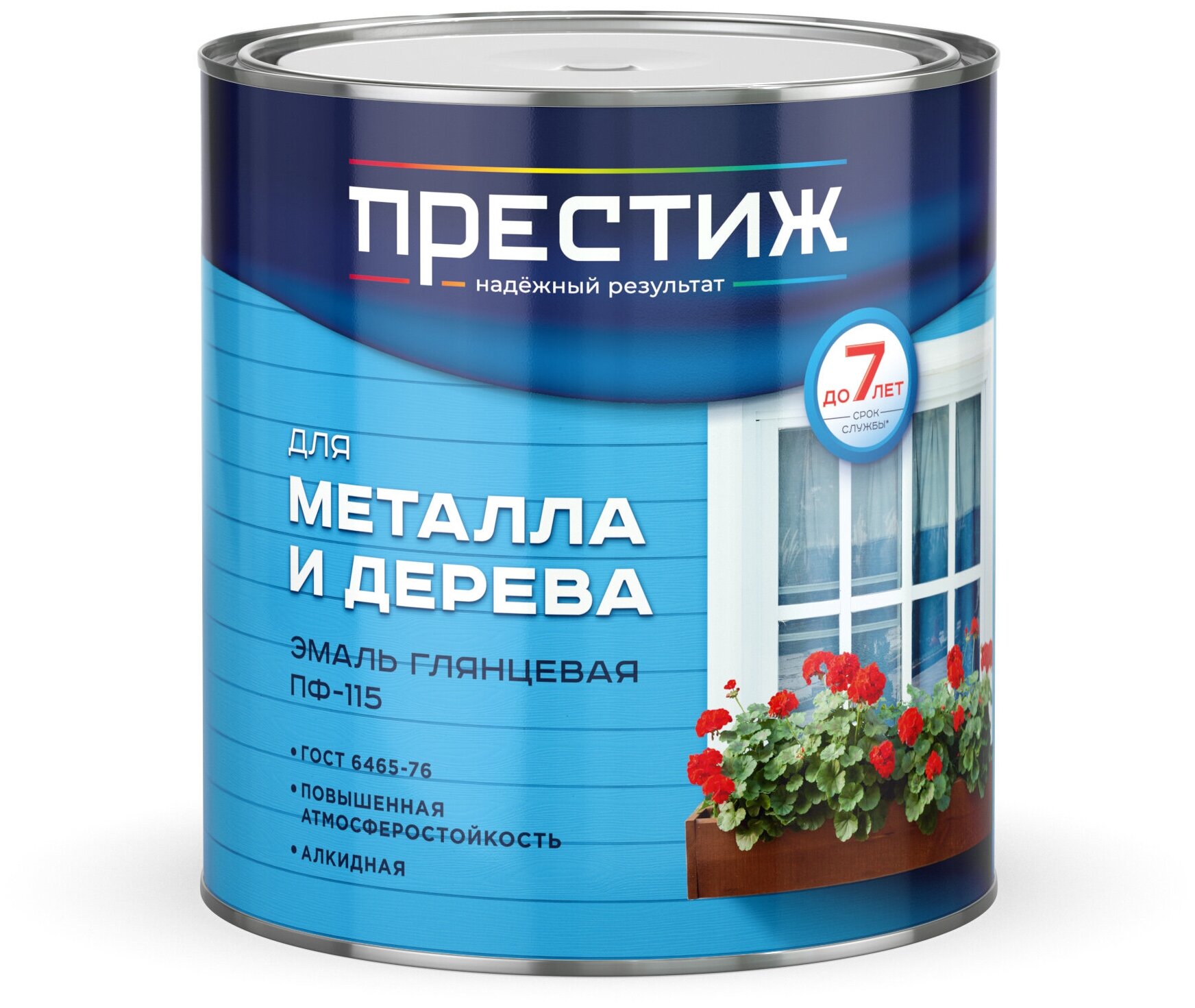 Эмаль ПФ-115 для металла и дерева Престиж, алкидная, глянцевая, 1,9 кг, синяя, 1шт, металлическая банка