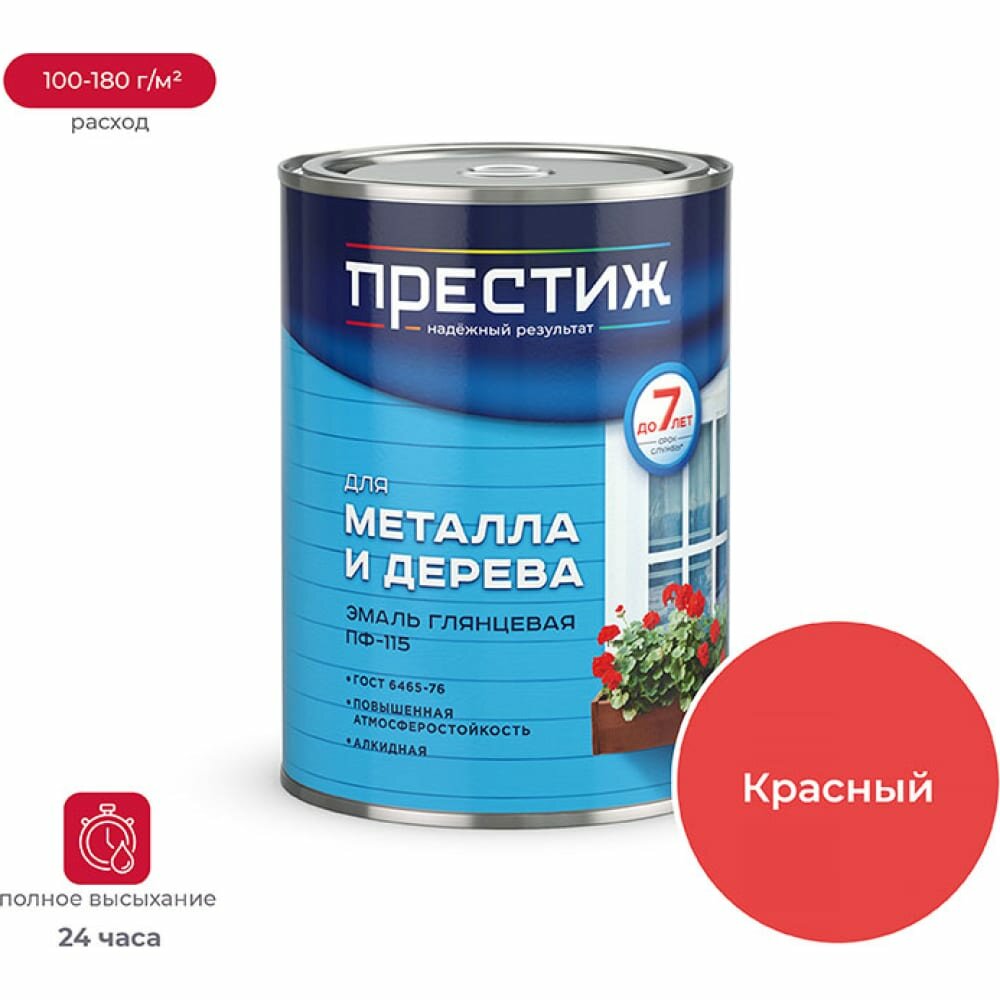 Ниже Вы можете прочитать отзывы на Эмаль ПФ-115 для металла и дерева Престиж, алкидная, глянцевая, 0,9 кг, красная, 1шт, металлическая банка, ознакомится с подробными характеристиками, посмотреть интересные обзоры и фотографии на Эмаль ПФ-115 для металла и дерева Престиж, алкидная, глянцевая, 0,9 кг, красная, 1шт, металлическая банка.