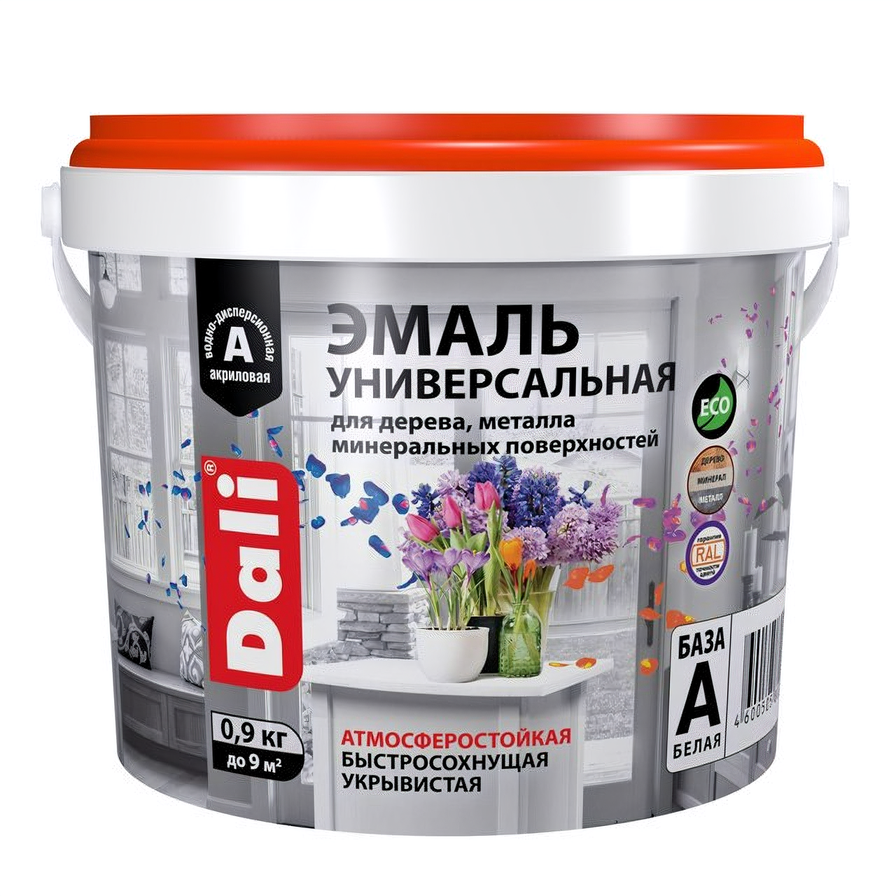 Эмаль универсальная акриловая полуматовая Dali (0,9кг) А (белая и под колеровку)