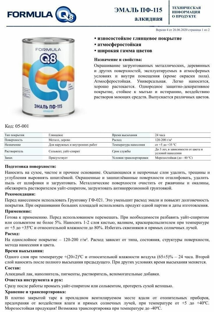 СохранитьЭмаль ПФ-115 алкидная Formula Q8, глянцевая, 0,9 кг, голубая, 1шт, металлическая банка интересное: