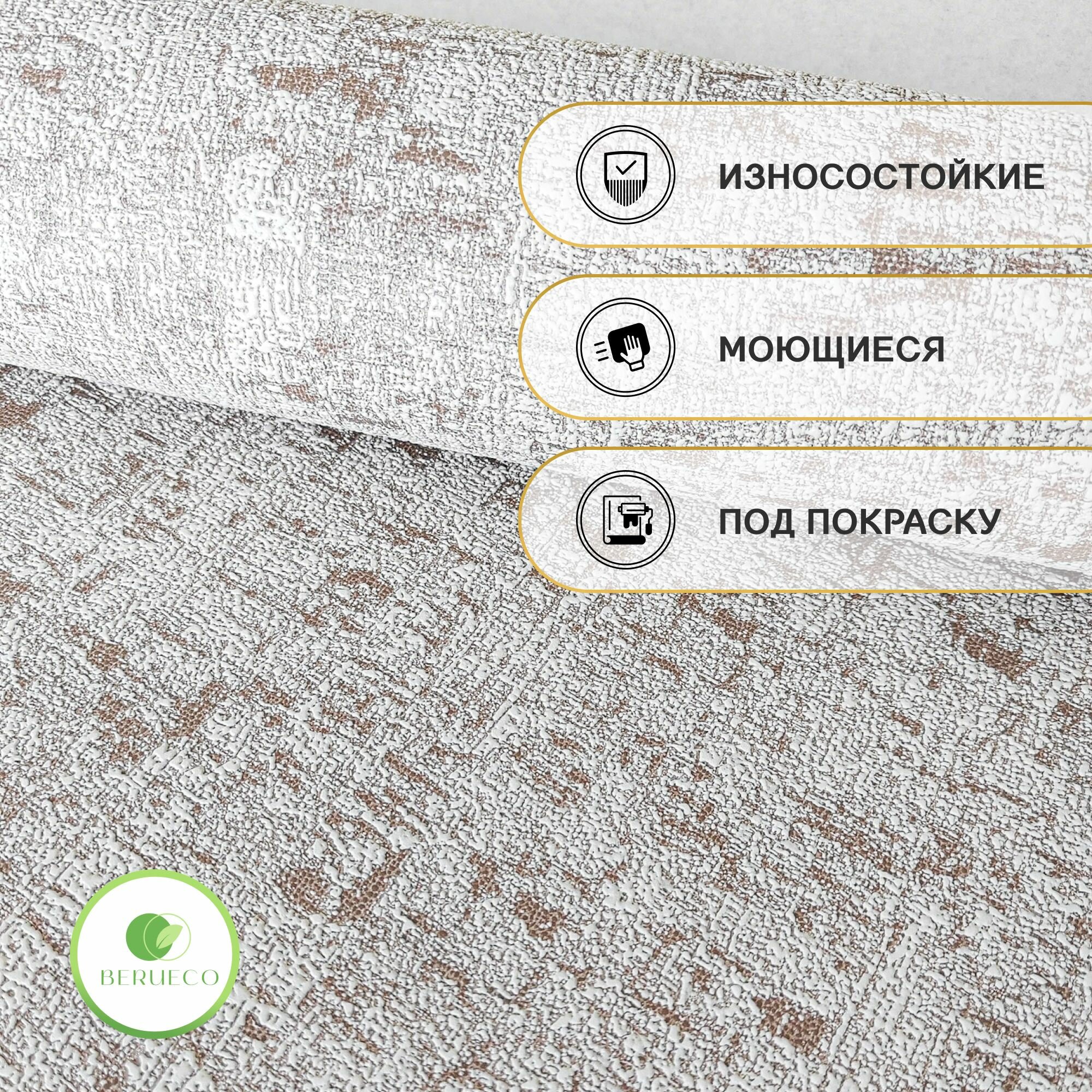 Обои без подгонки рисунка, флизелиновые 1.06. Коллекция Брик. Vilia Wallpaper. Вспененный винил на флизелине, однотонные 1508-23