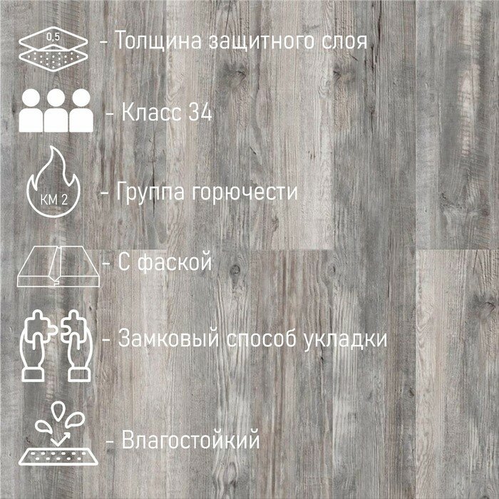 Кварц-винил cronafloor wood Дуб Серебристый 4мм 34кл 2,16м.кв/упаковка