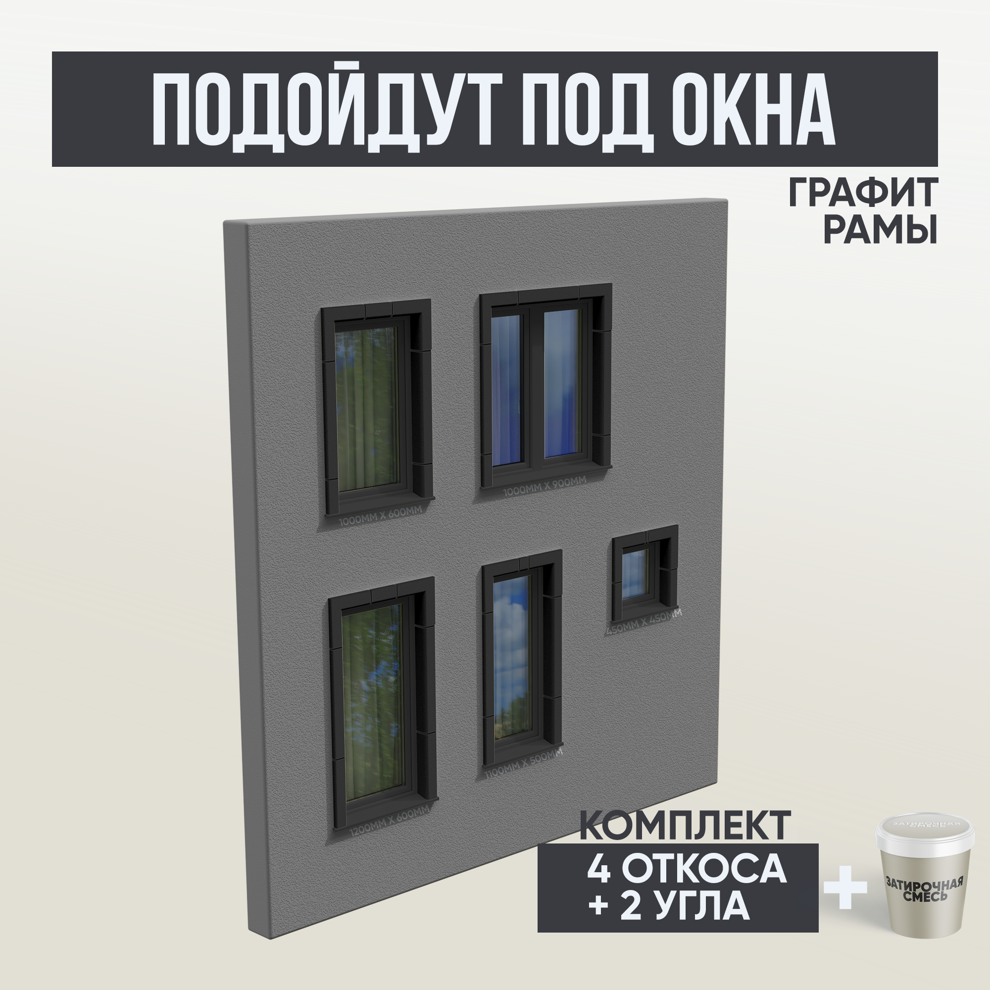 СохранитьОконные Откосы Утепленные, Фасадные, Набор на окно (с углами), цвет Графит. 4 откоса + 2 угла, глубина 260 мм интересное: