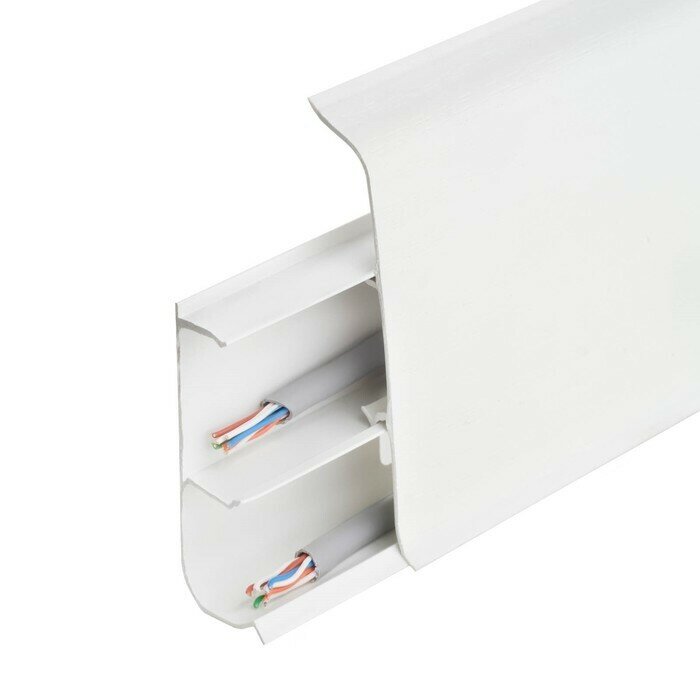 Плинтус ПВХ напольный Деконика 70 мм дуб снежный 2200 мм Г-профиль с кабель-каналом