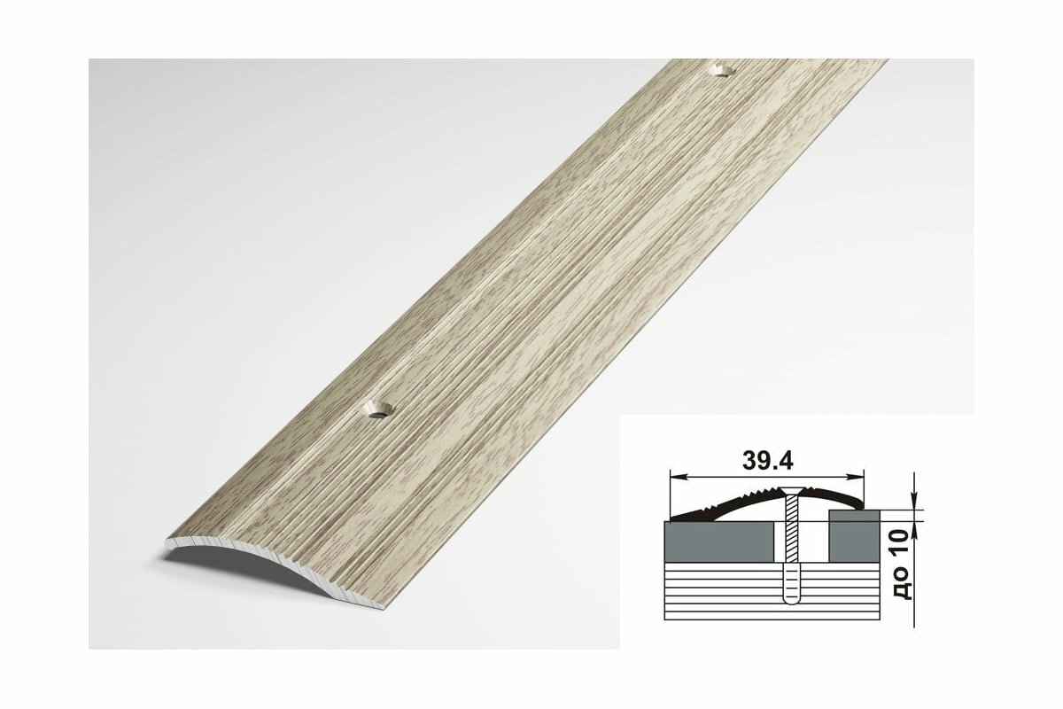 СохранитьПорог напольный разноуровневый, ширина 40мм, перепад до 10мм, длина 0,9м, профиль-порожек алюминиевый лука ПР 02.900.087 (Дуб белёный) интересное: