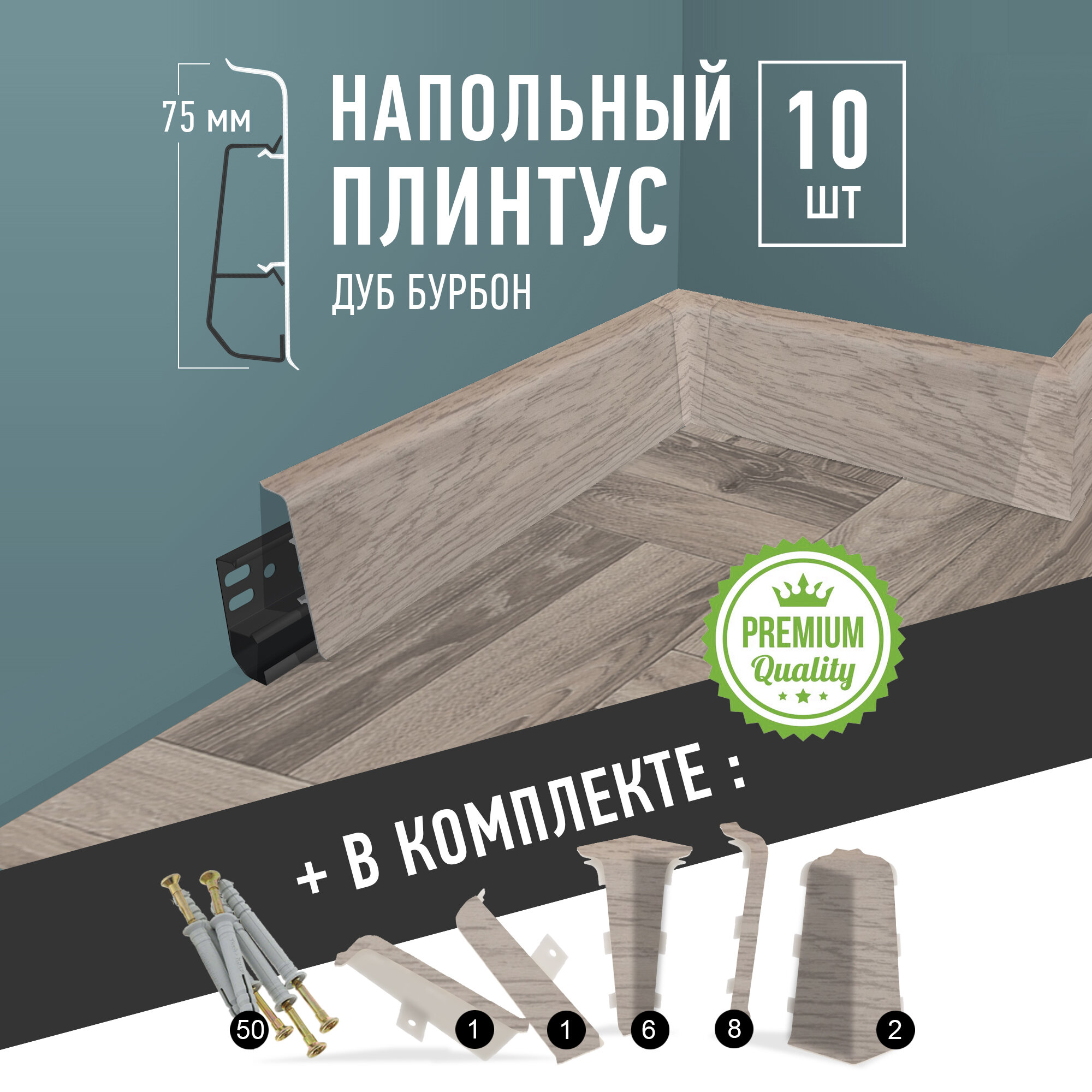 Купить Плинтус напольный 1100 х 75 мм , 10шт , с кабель-каналом , цвет Дуб Бурбон