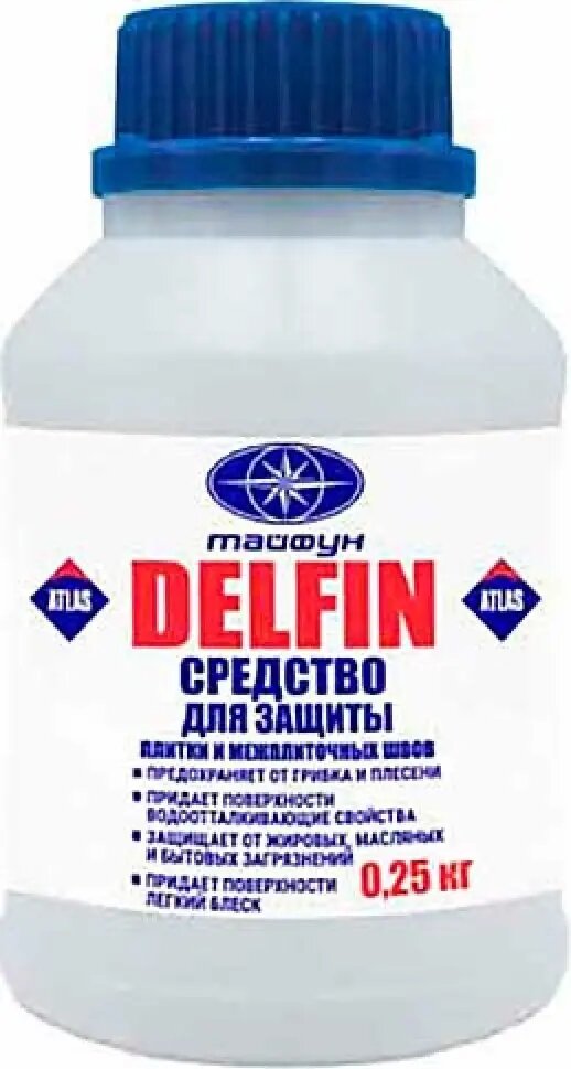 Средство для защиты плитки и межплиточных швов Тайфун Мастер DELFIN бутылка, 1 кг dfn-1-lux