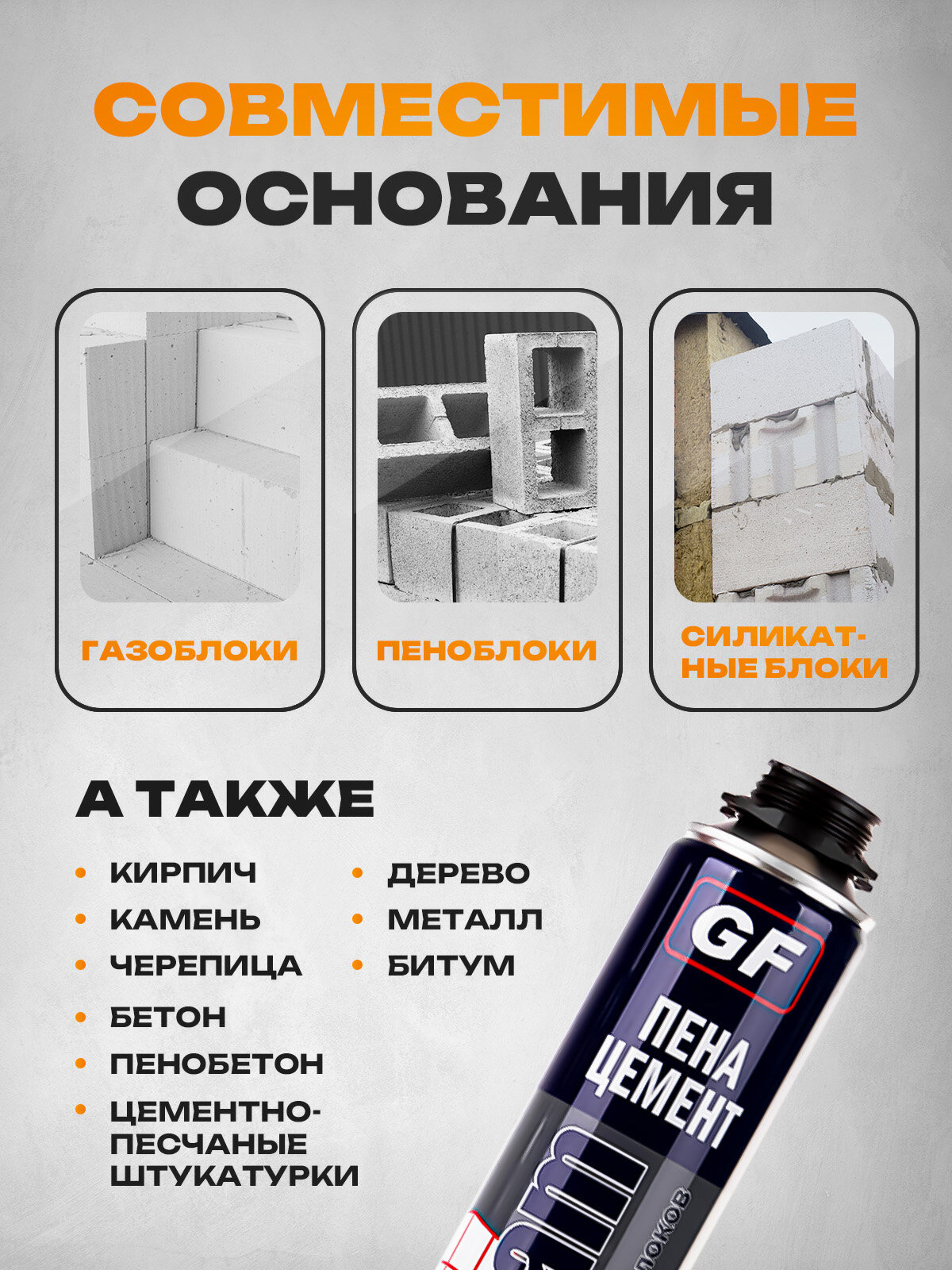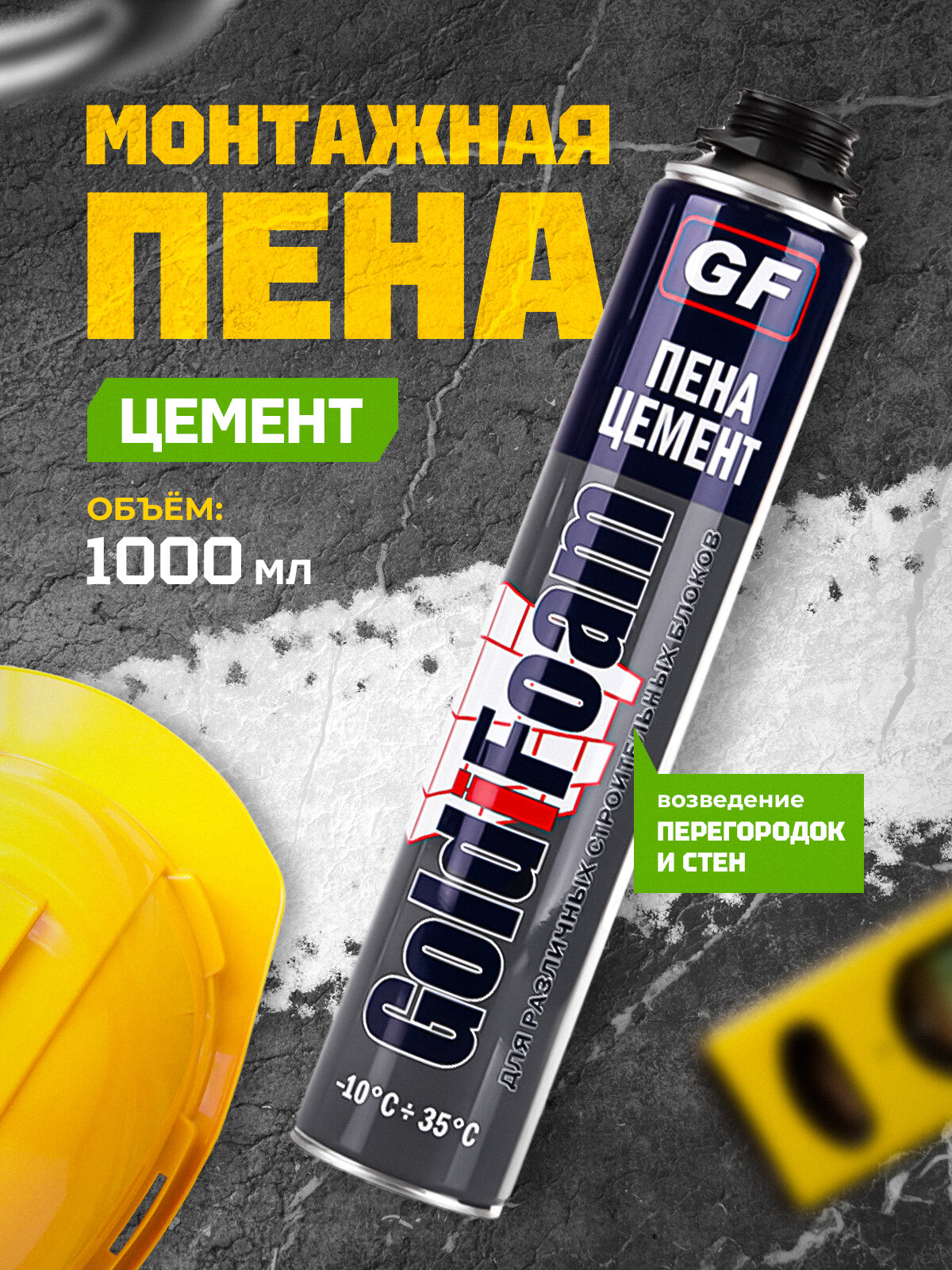 Монтажная пена-цемент полиуретановая GoldiFoam всесезонная, профессиональная, 1000 мл., 1 шт. интересное: