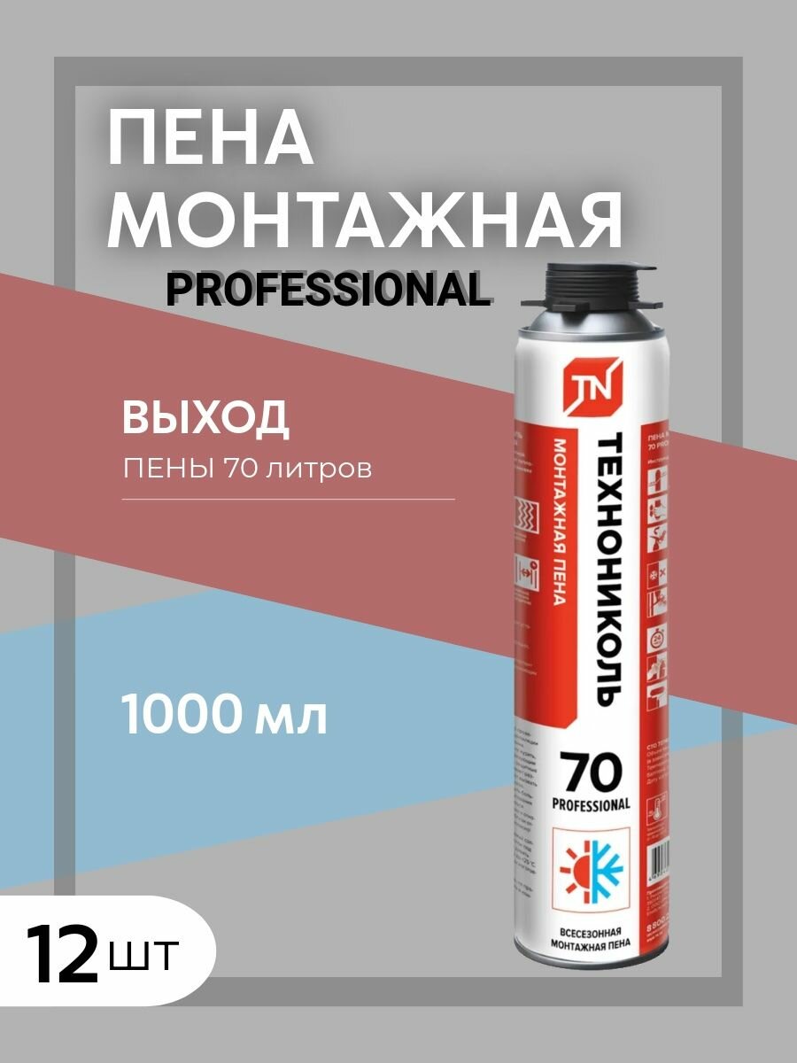 Технониколь 70 Professional всесезонная профессиональная монтажная пена, 1000 мл, 12 шт