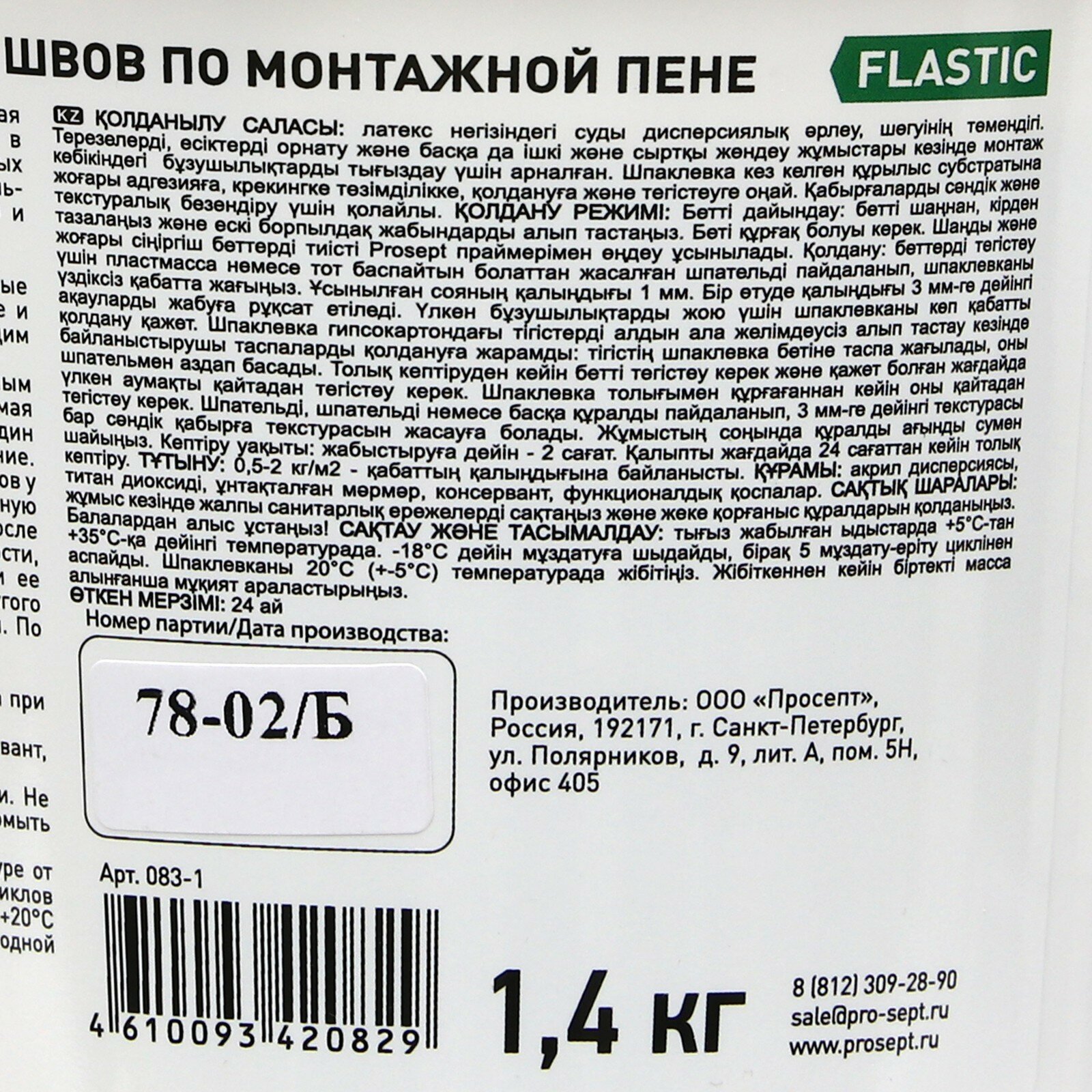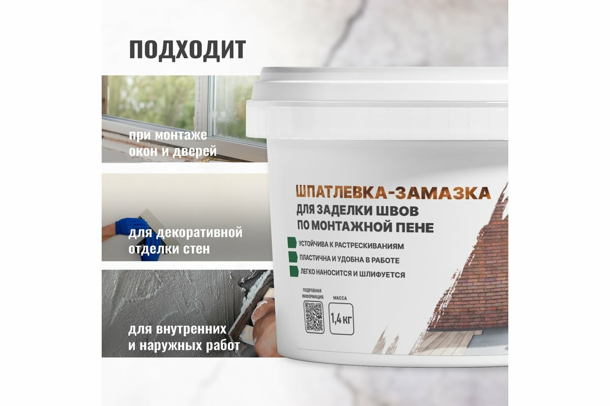 Шпатлевка-замазка для заделки Flastic, швов по монтажной пене, 1,4 кг