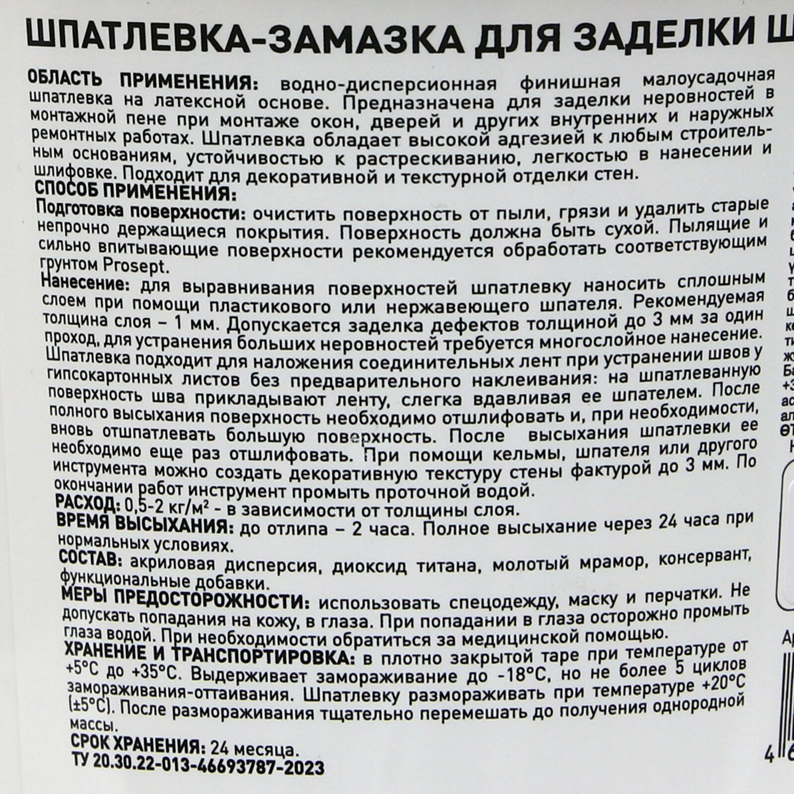 Шпатлевка-замазка по монтажной пене Prosept (1,4кг)