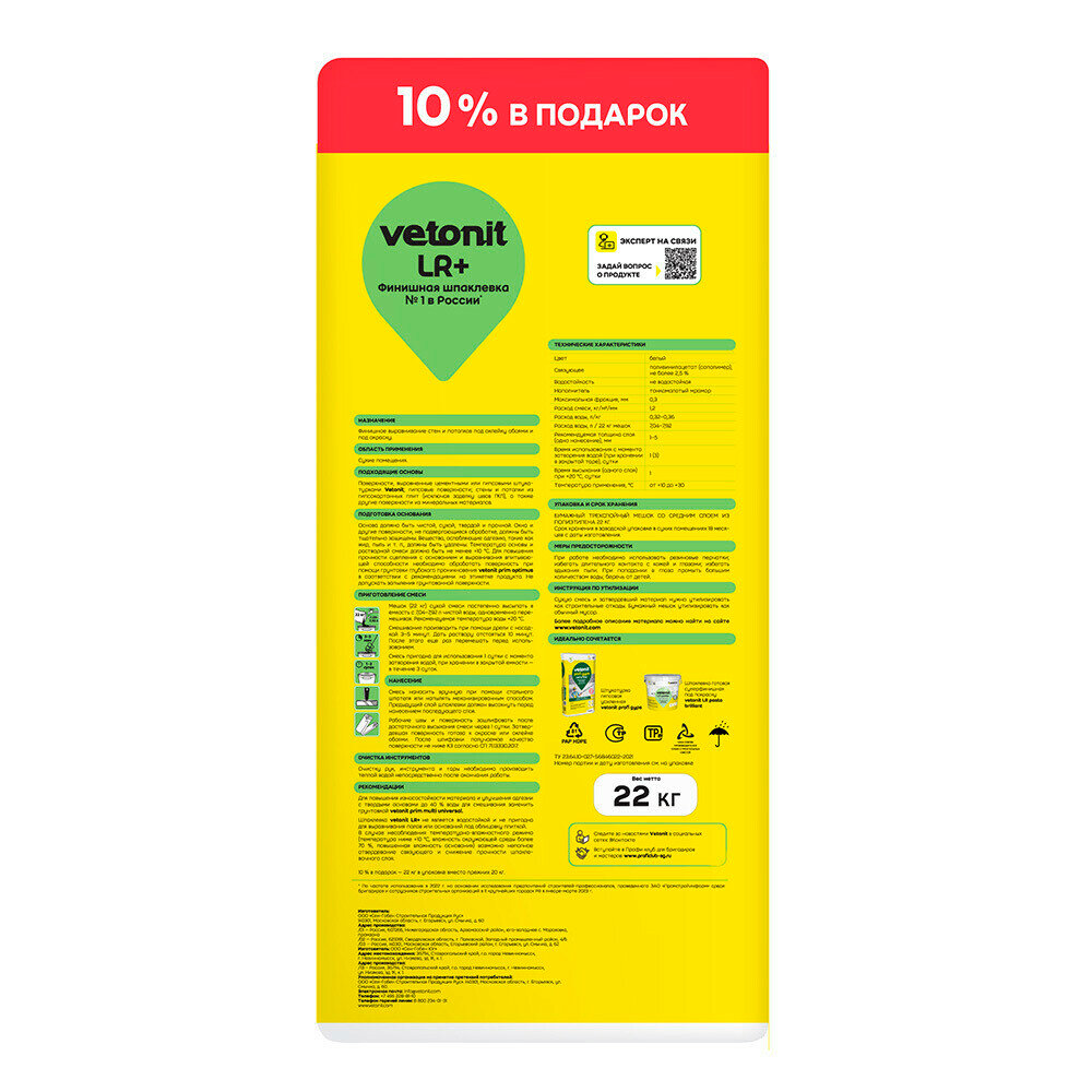 Ниже Вы можете прочитать отзывы на Полимерная шпаклевка Vetonit LR+ 22 кг, ознакомится с подробными характеристиками, посмотреть интересные обзоры и фотографии на Полимерная шпаклевка Vetonit LR+ 22 кг.