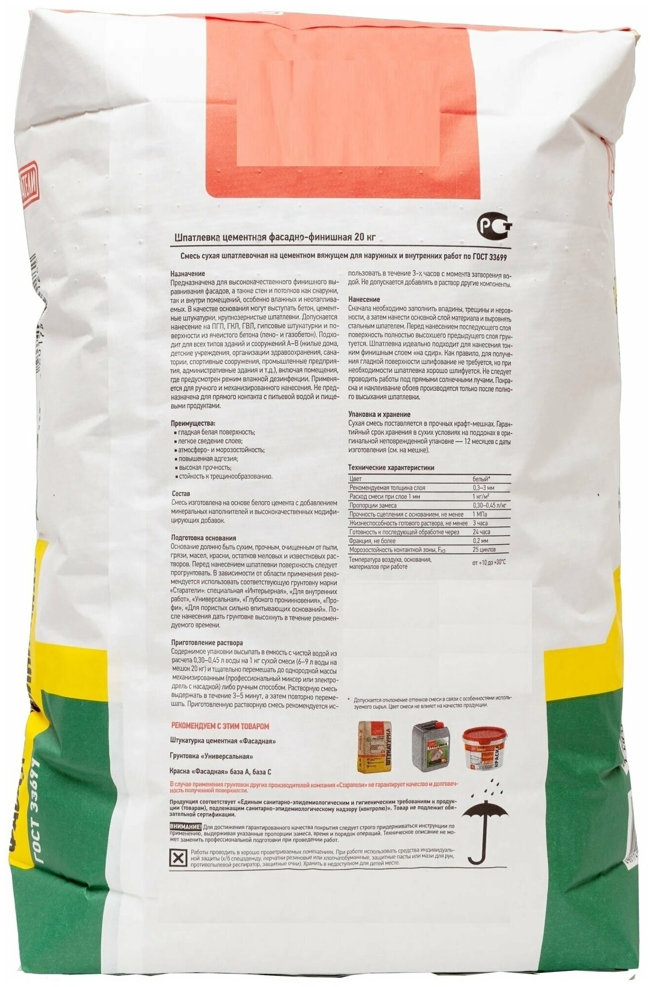 СохранитьШпаклёвка цементная финишная, 20 кг, для заключительного этапа ремонтных или строительных работ, подходит для использования во влажных помещениях интересное: