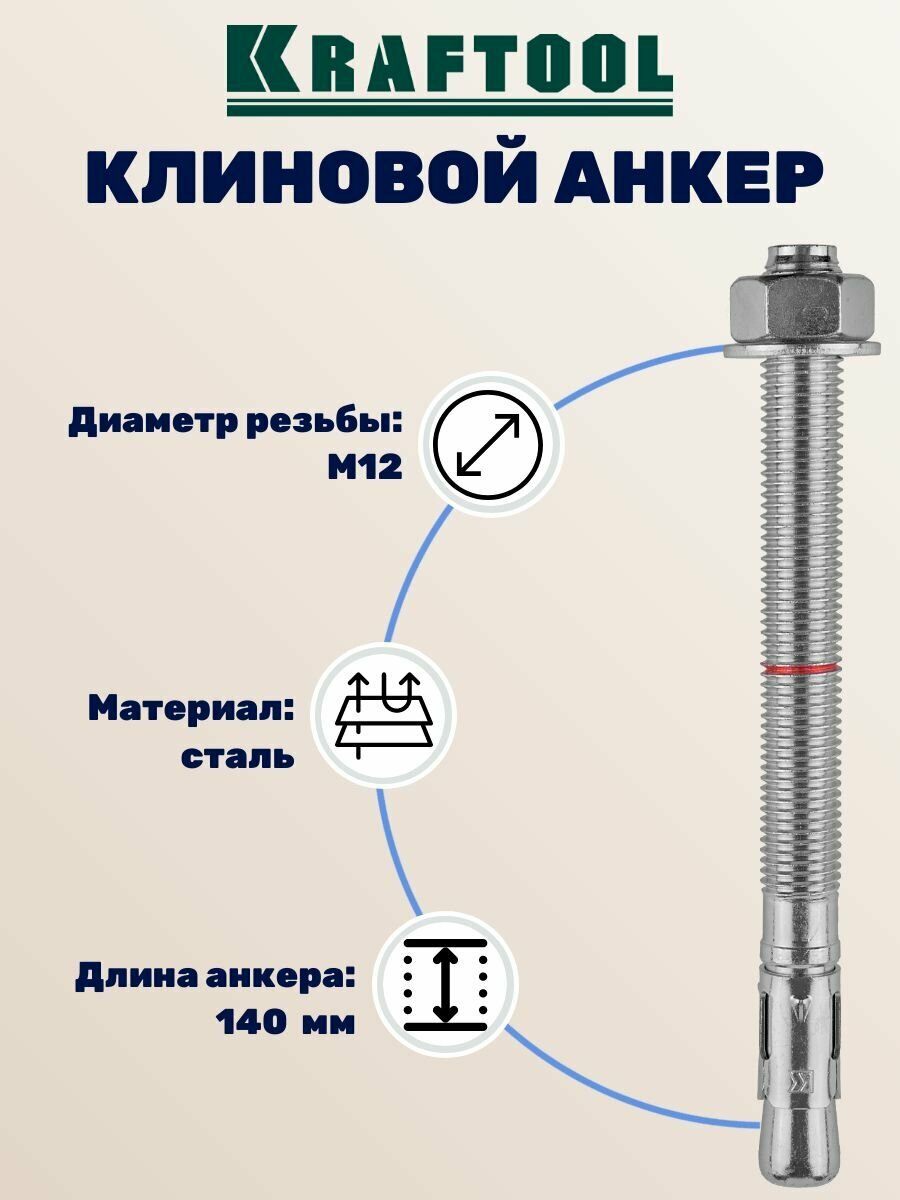 Купить KRAFTOOL М12x140, ETA Опция 7, 25 шт., анкер клиновой 302184-12-140