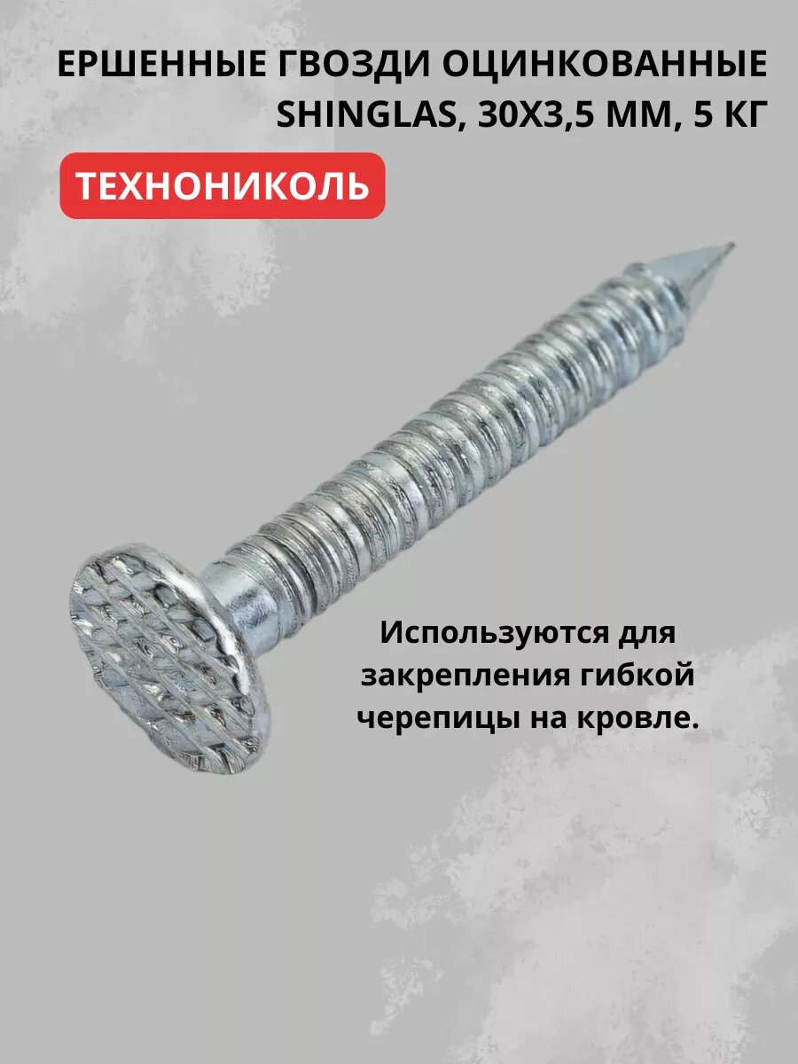 Гвозди для гибкой черепицы Шинглас, ершенные оцинкованные ,30х3,5 мм (5кг)