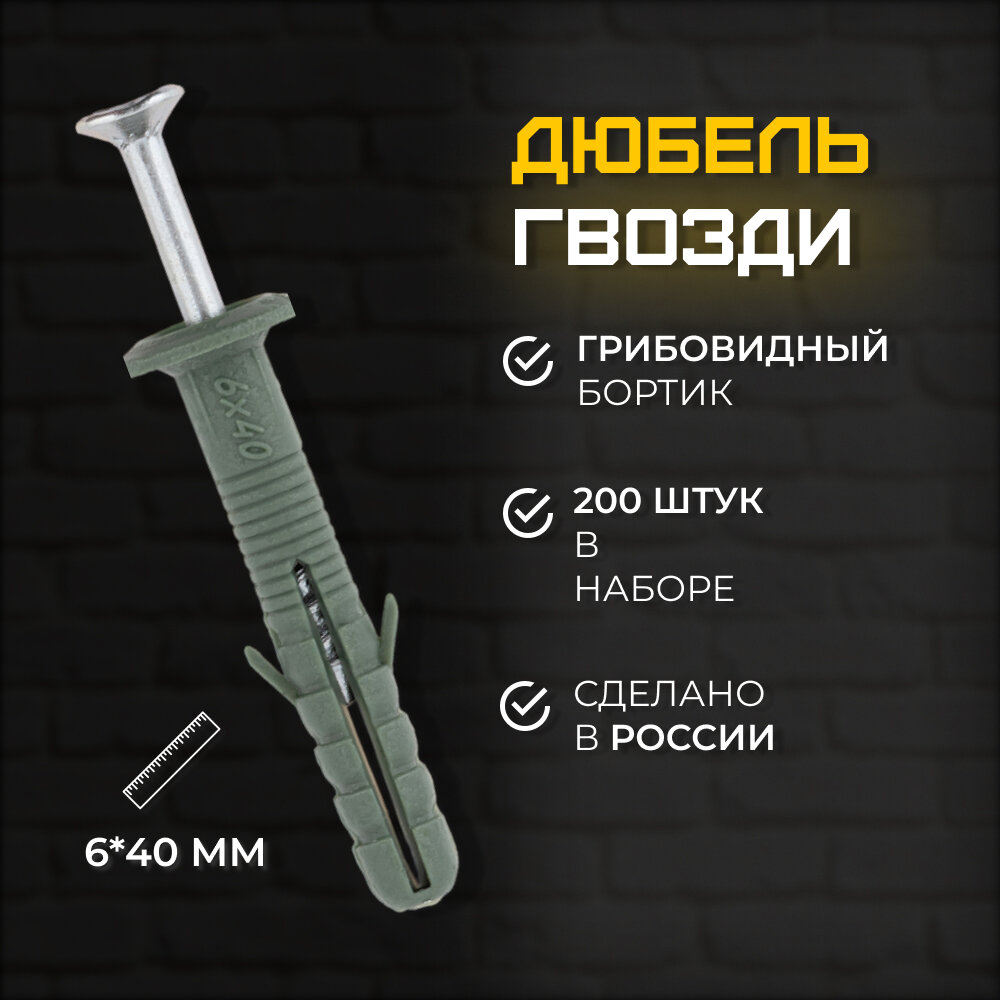 Дюбель- гвозди 6х40 мм, грибовидны тип борта (200 шт. )для строительства, для бетона, камня, кирпича интересное: