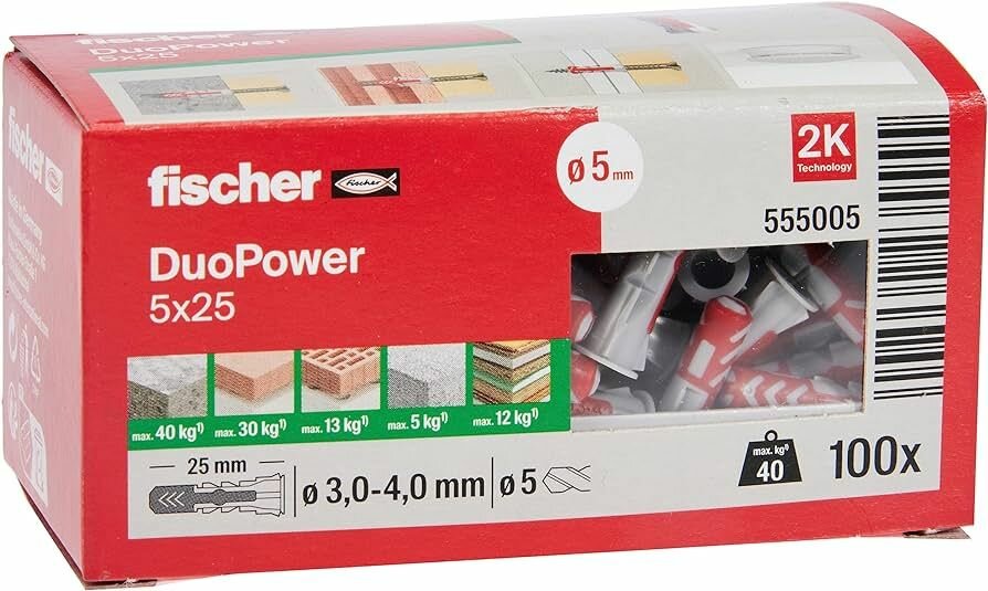 5x25 мм, 100 шт., DUOPOWER дюбель Fischer универсальный, высокотехнологичный, двухкомпонентный нейлон