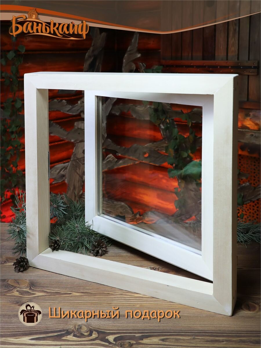 Форточка БаньКайф, дерево, 30х30 см, окно для бани