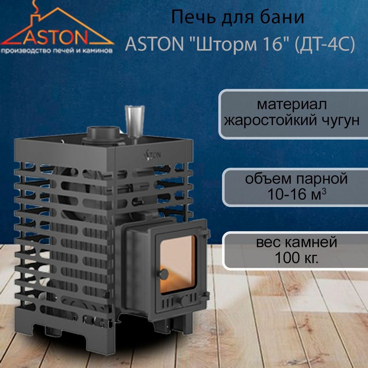 Печь для бани ASTON Шторм 16 (ДТ-4) чугунная с закрытой каменкой