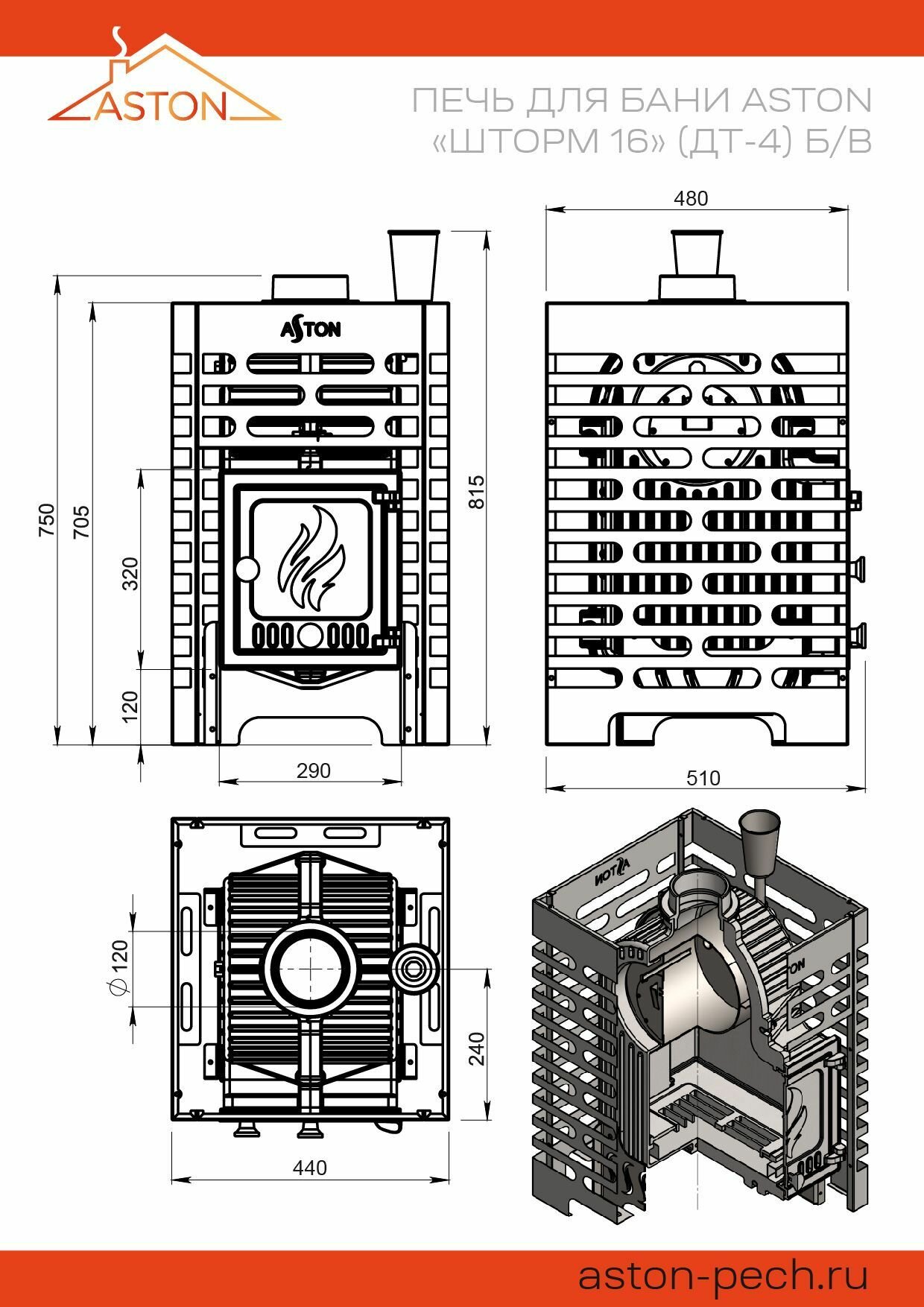 СохранитьПечь для бани ASTON Шторм 16 (ДТ-4) чугунная с закрытой каменкой интересное:
