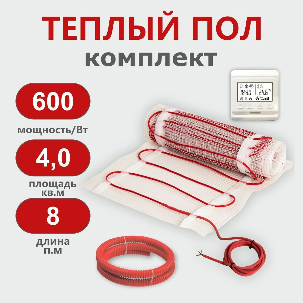 Тёплый пол с терморегулятором электрический под плитку 4.0м2
