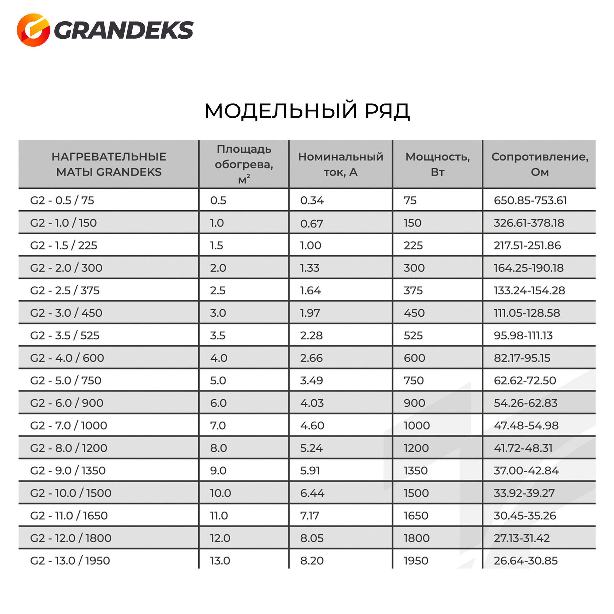 Теплый пол Grandeks G2 - 6,0 / 900. Площадь - 6,0 м2, мощность - 900 Вт