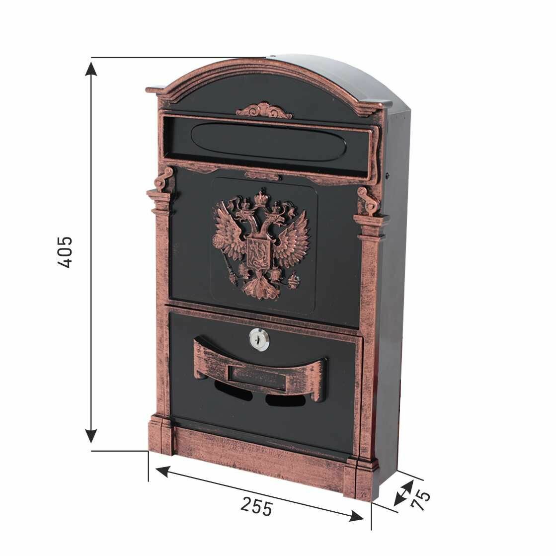 Ящик почтовый уличный для частного дома аллюр №4011В "Герб" старая медь
