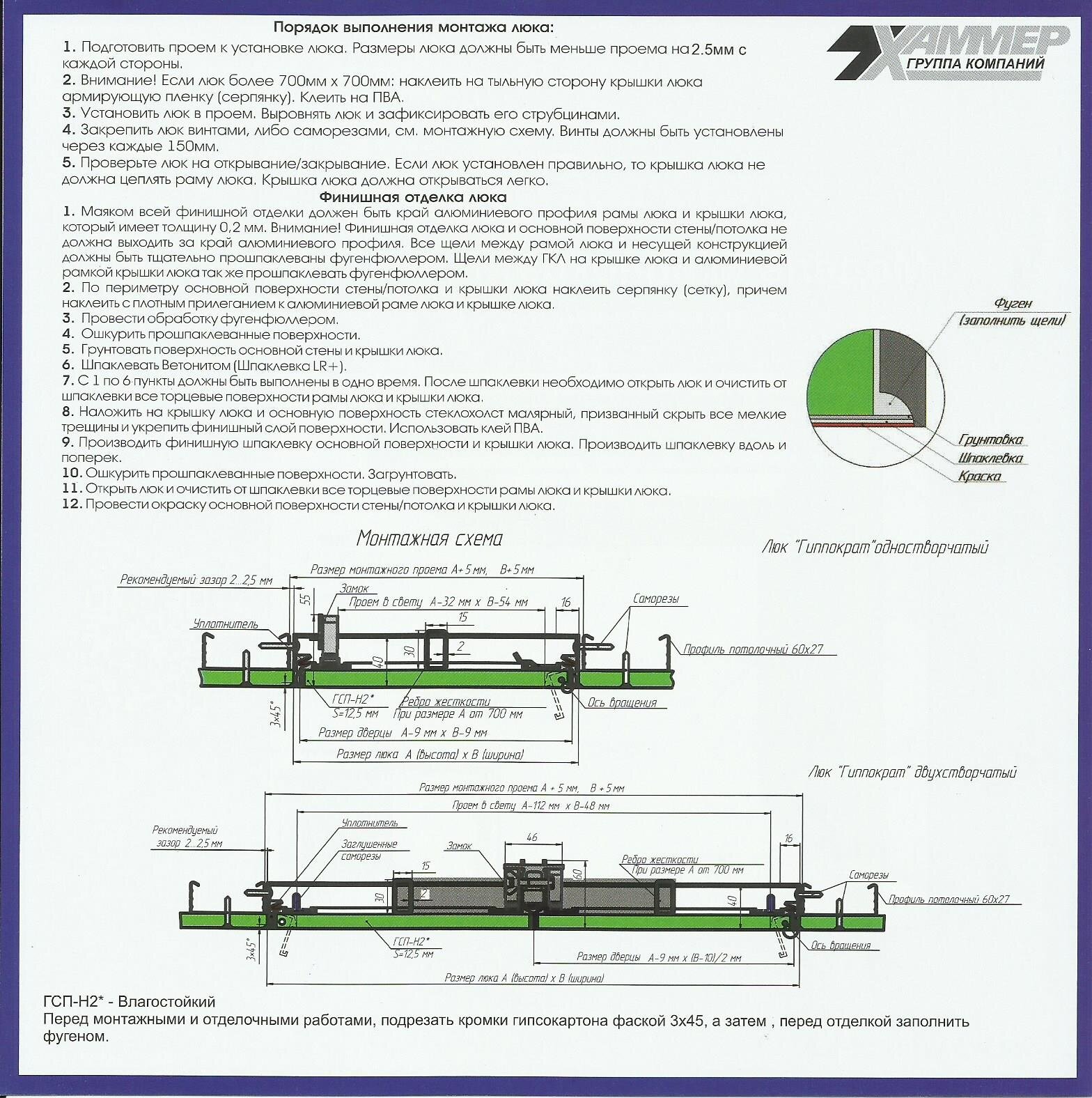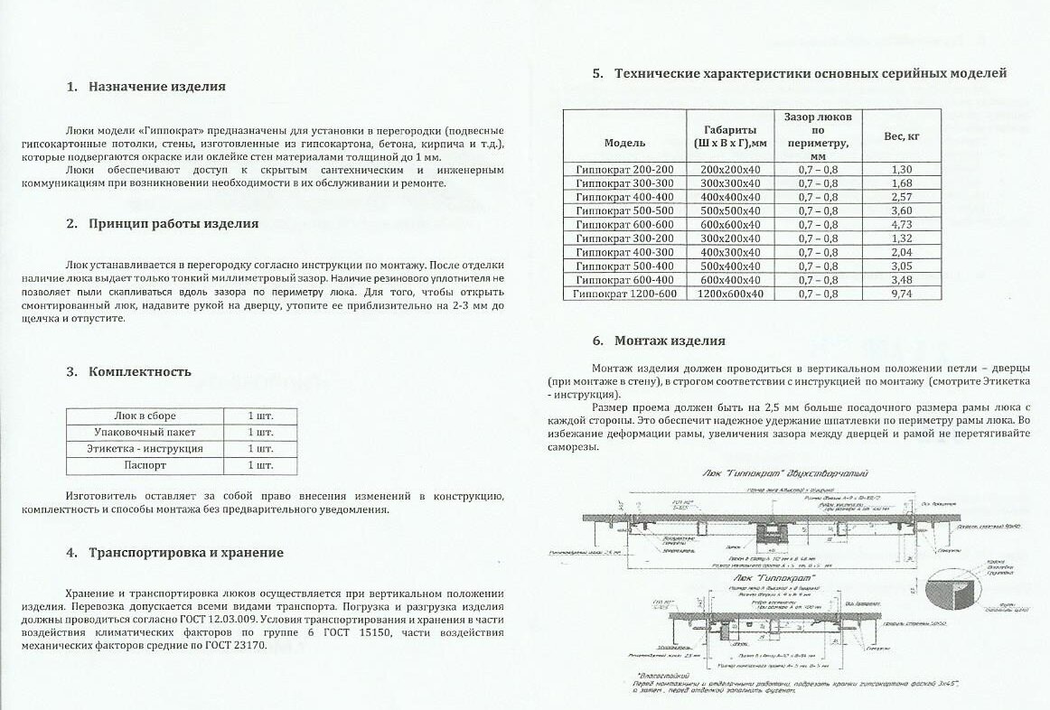 | Дополнительная информация | Варианты отделки люка: Декоративная штукатурка, краска, обои, Шпатлёвка. |