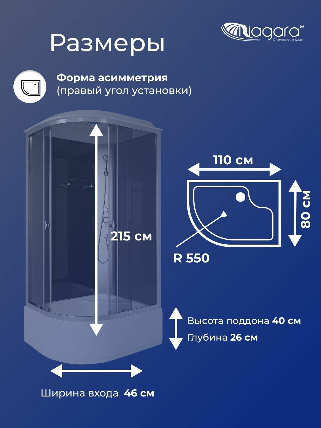 Душевая кабина Niagara Eco E110/80/40R/TN стекло тонированное, профиль серебро