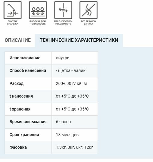 | Мин. время высыхания | 6 ч |